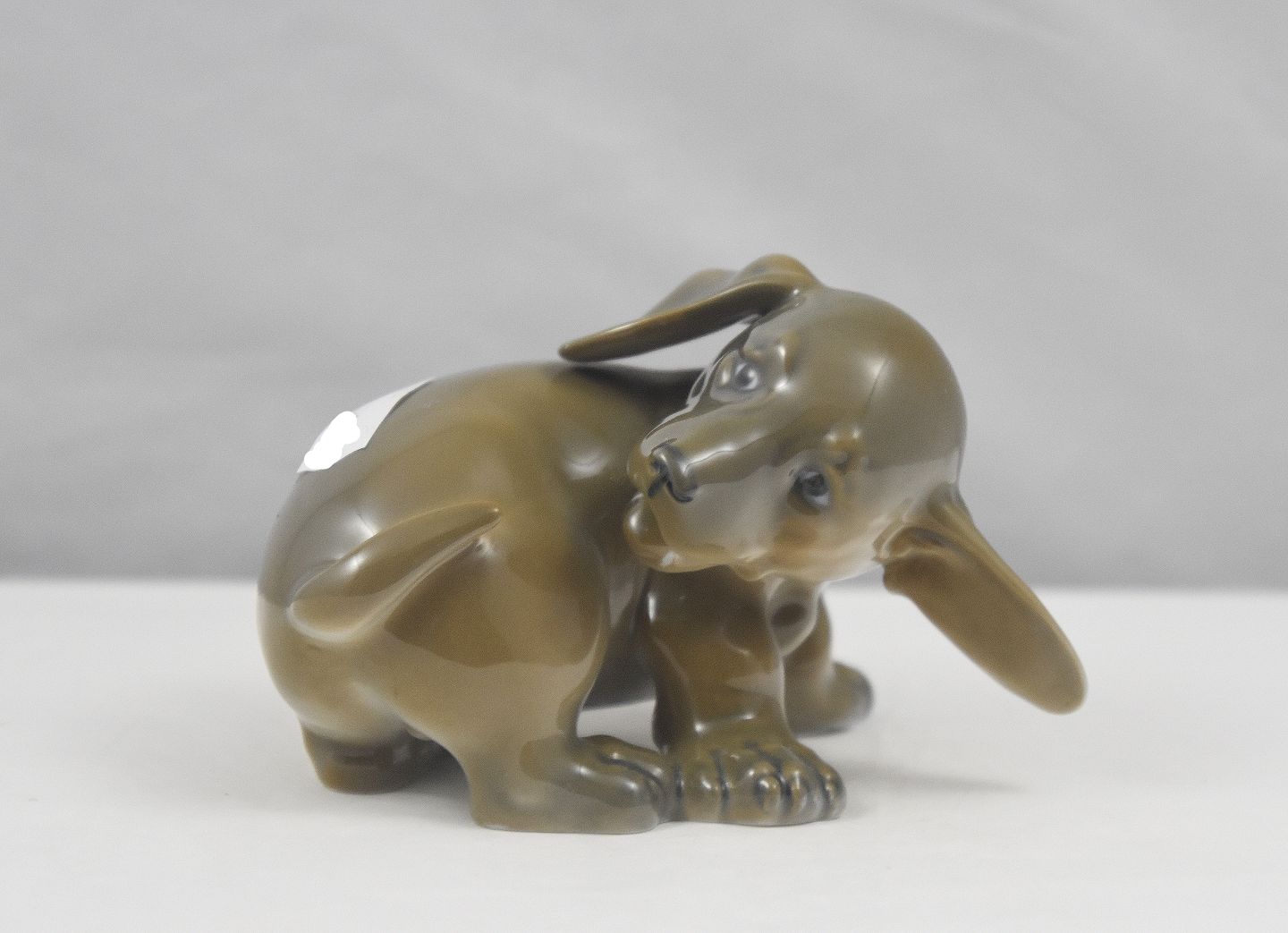 Royal Copenhagen figur af Korthåret, siddende korthåret gravhund nr. 1407. 1 sortering.