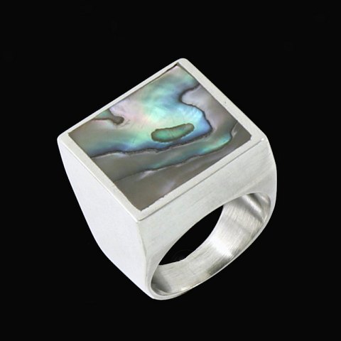 Palle Bisgaard - Denmark. Ring i sterlingsølv med Abelone #14. 1960erne