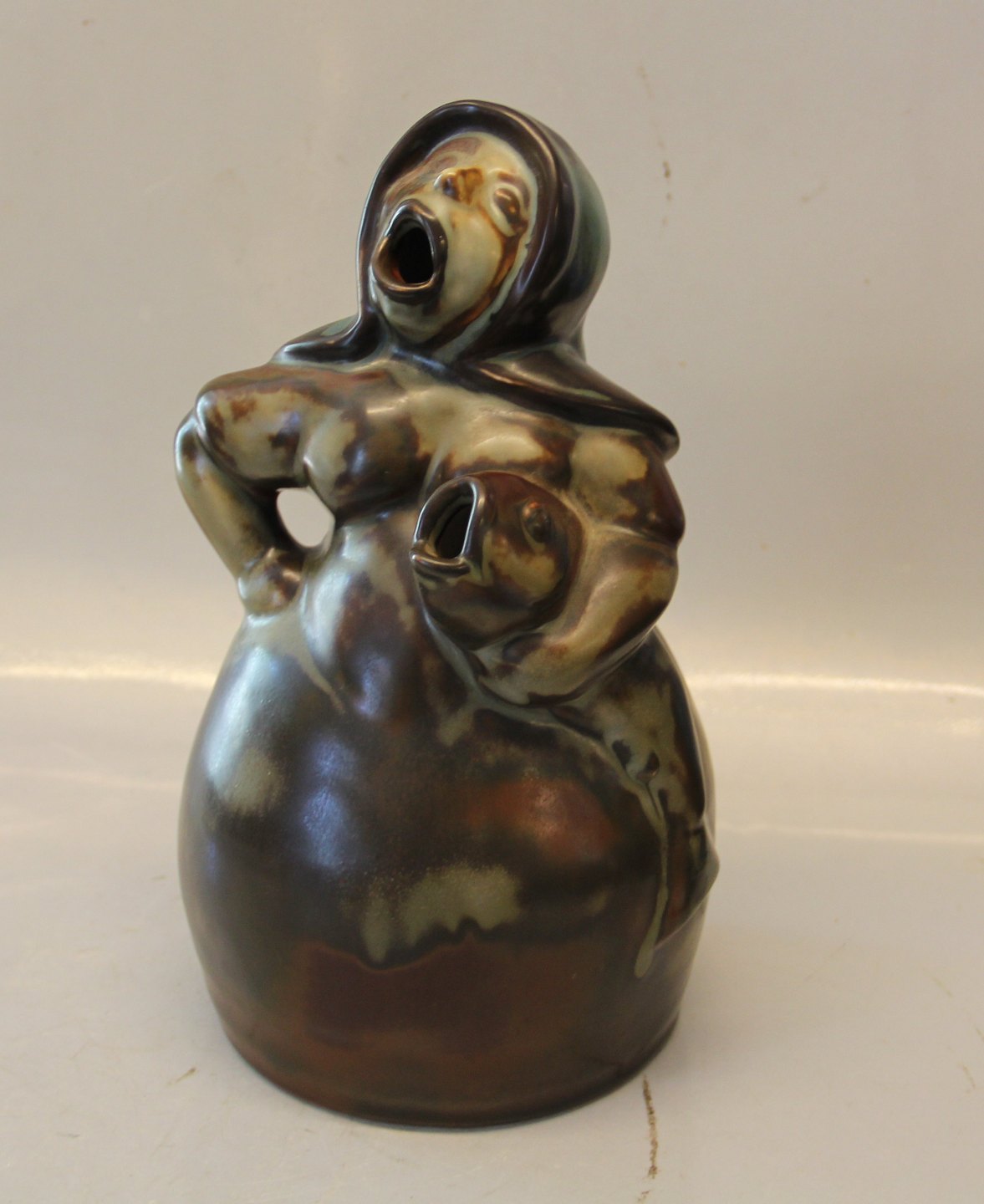 Dansk Stentøj B&G K 255 Fiskerkone med torsk 30 x 18 cm Axel Brüel 1931