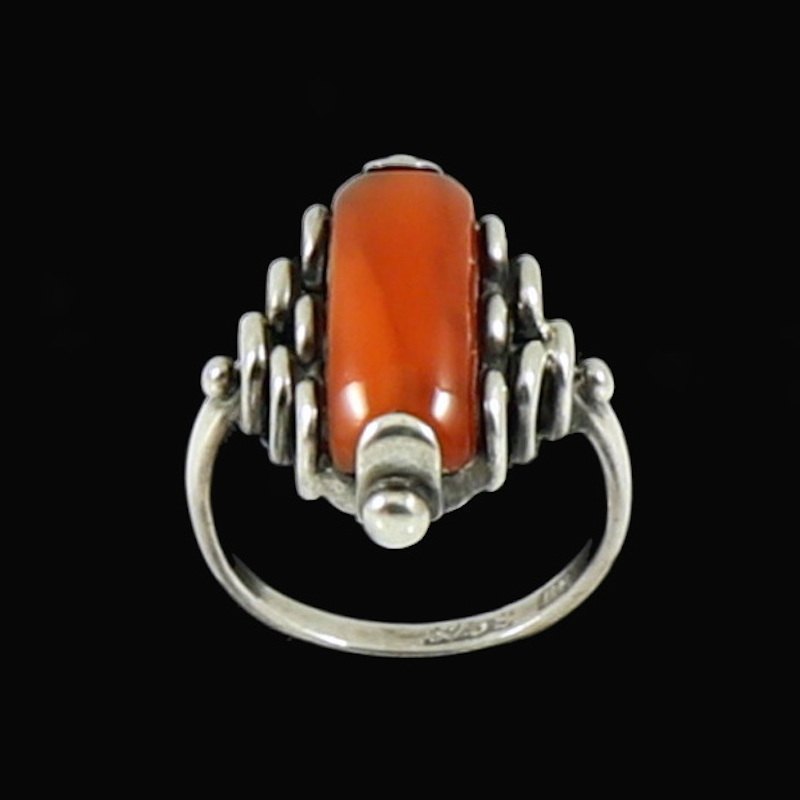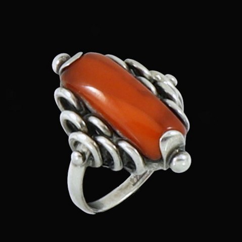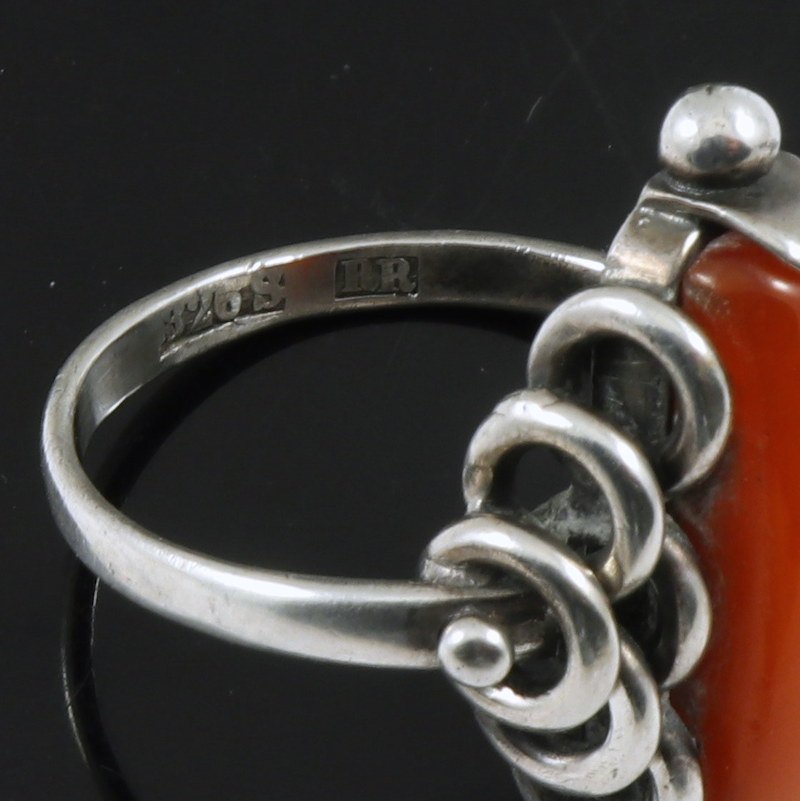 R. Rasmussen. Skønvirke ring i sølv med rav.