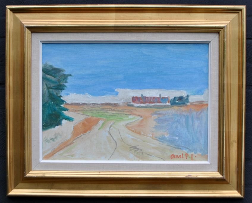 Jensen, Axel P. (1885 - 1972) Danmark: Landskab med gård.