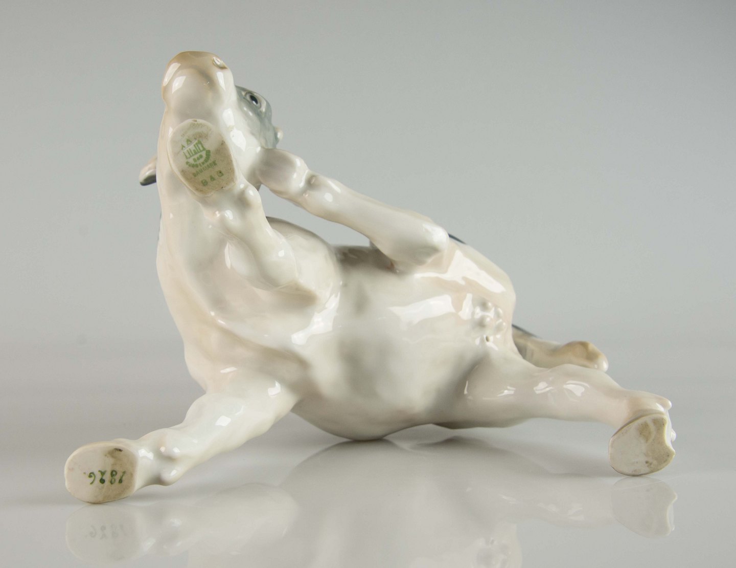 Figur i porcelæn med motiv af kalv, der klør sig bag øret nr. 1826