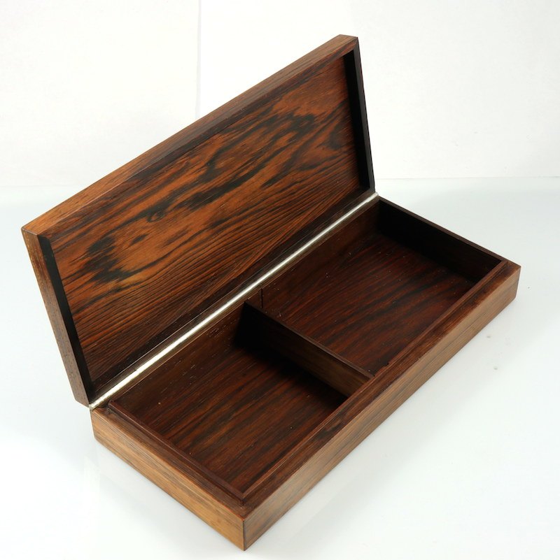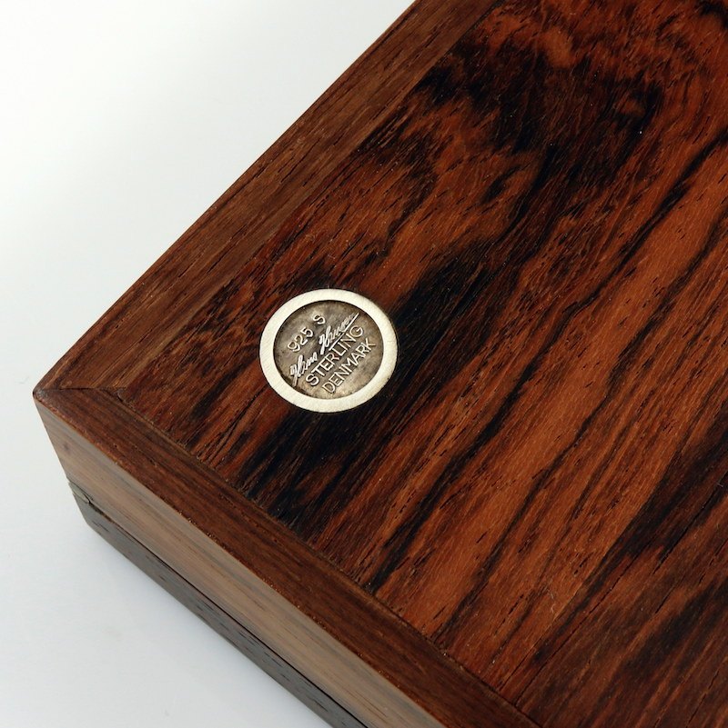 Hans Hansen. Æske i Rio-Palisander med indlagt sterling sølv. 1960erne.