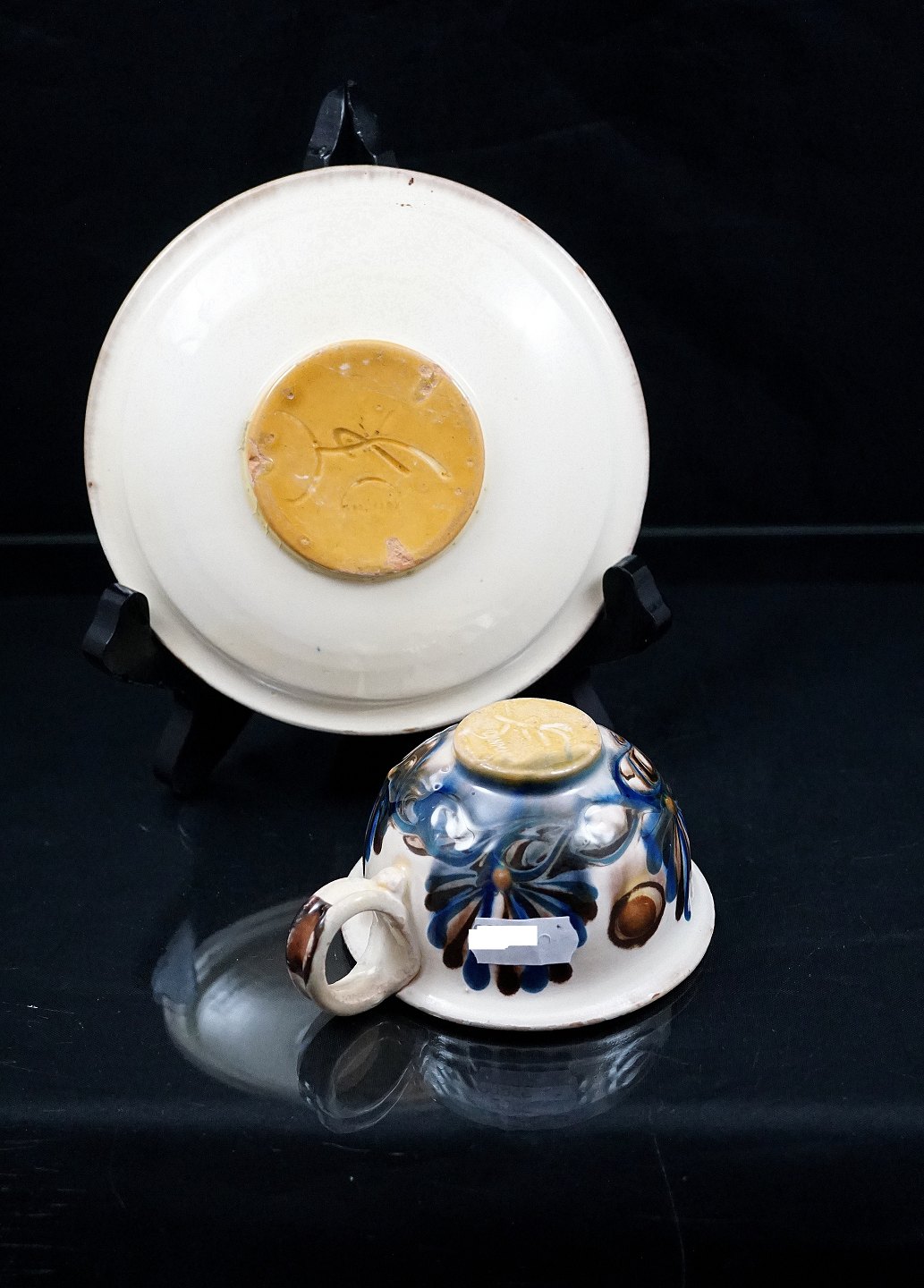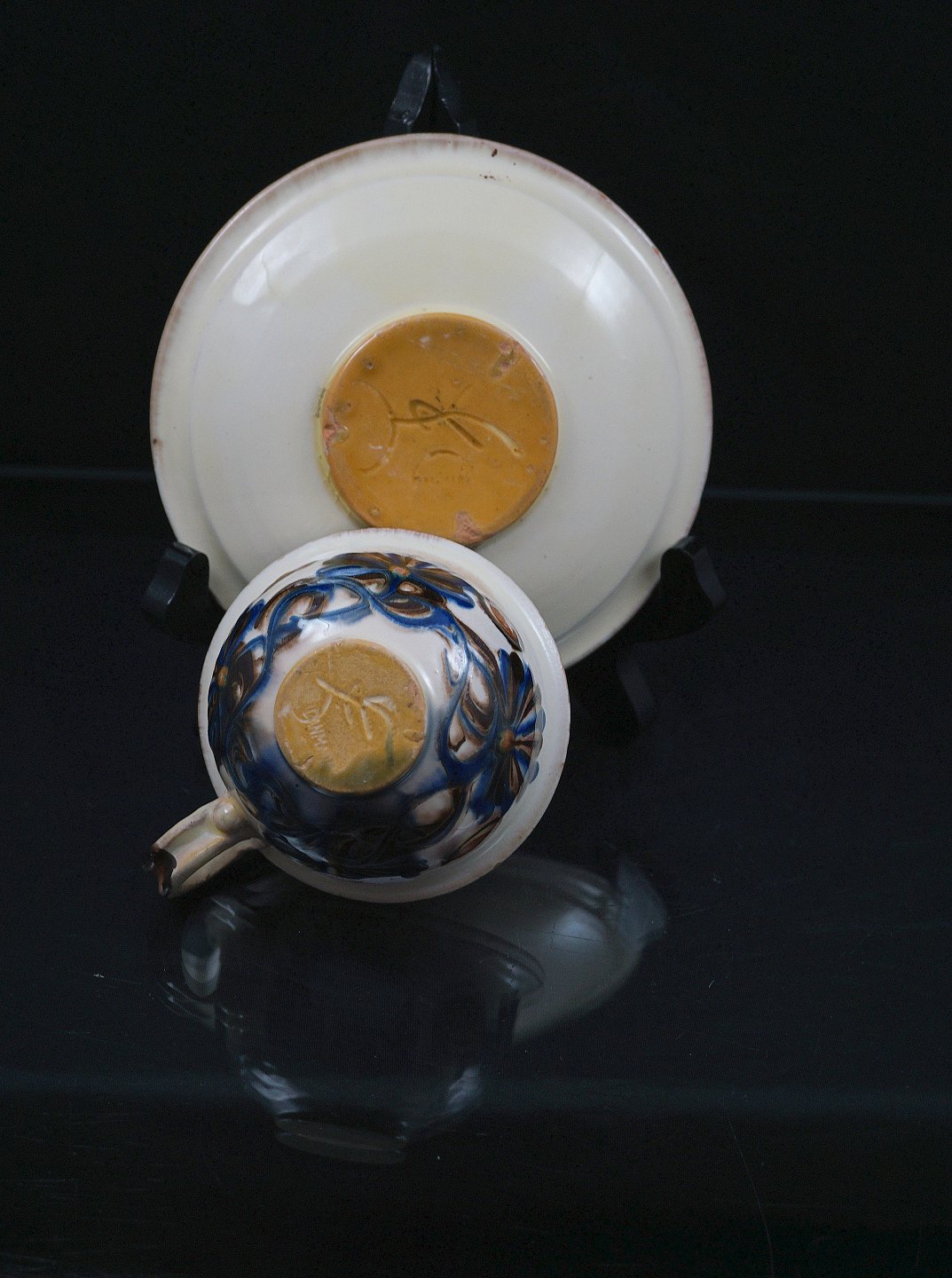 3 kopper med underkopper, dekoreret med Kohornsteknik/Kohornsglasur