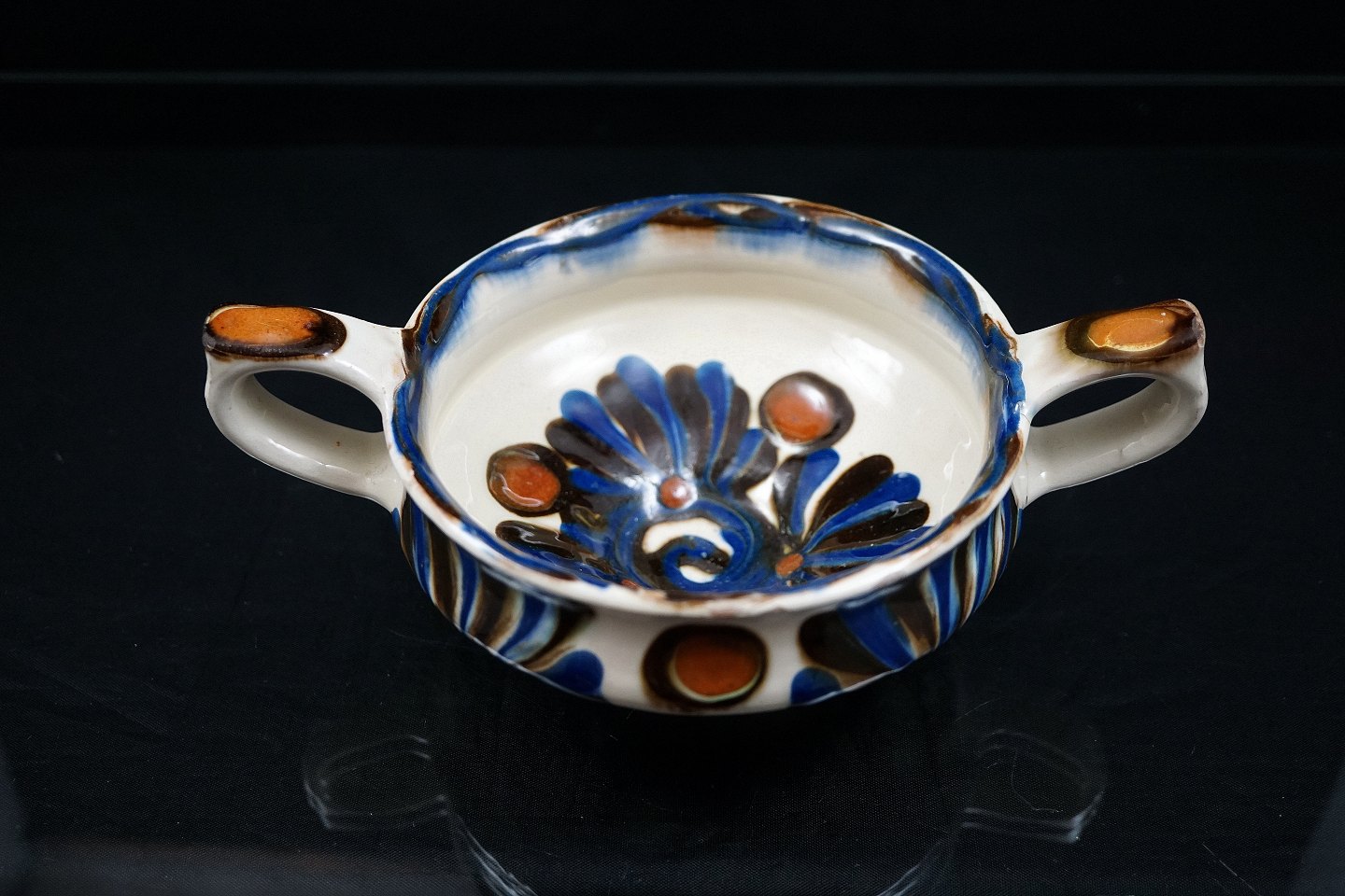 HAK skål med hanke, dekoration kohornsteknik/kohornsglasur