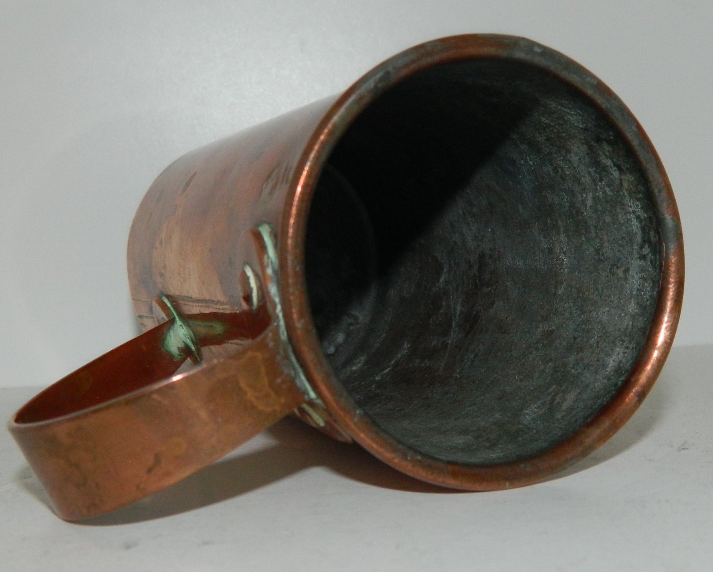 Copper cup - measuring cup in super nice condition. Manufactured approximately in the 19th century. Unknown master mark on both sides of the handle - top. Dimensions: 12 cm high and opening diameter of 6 cm.