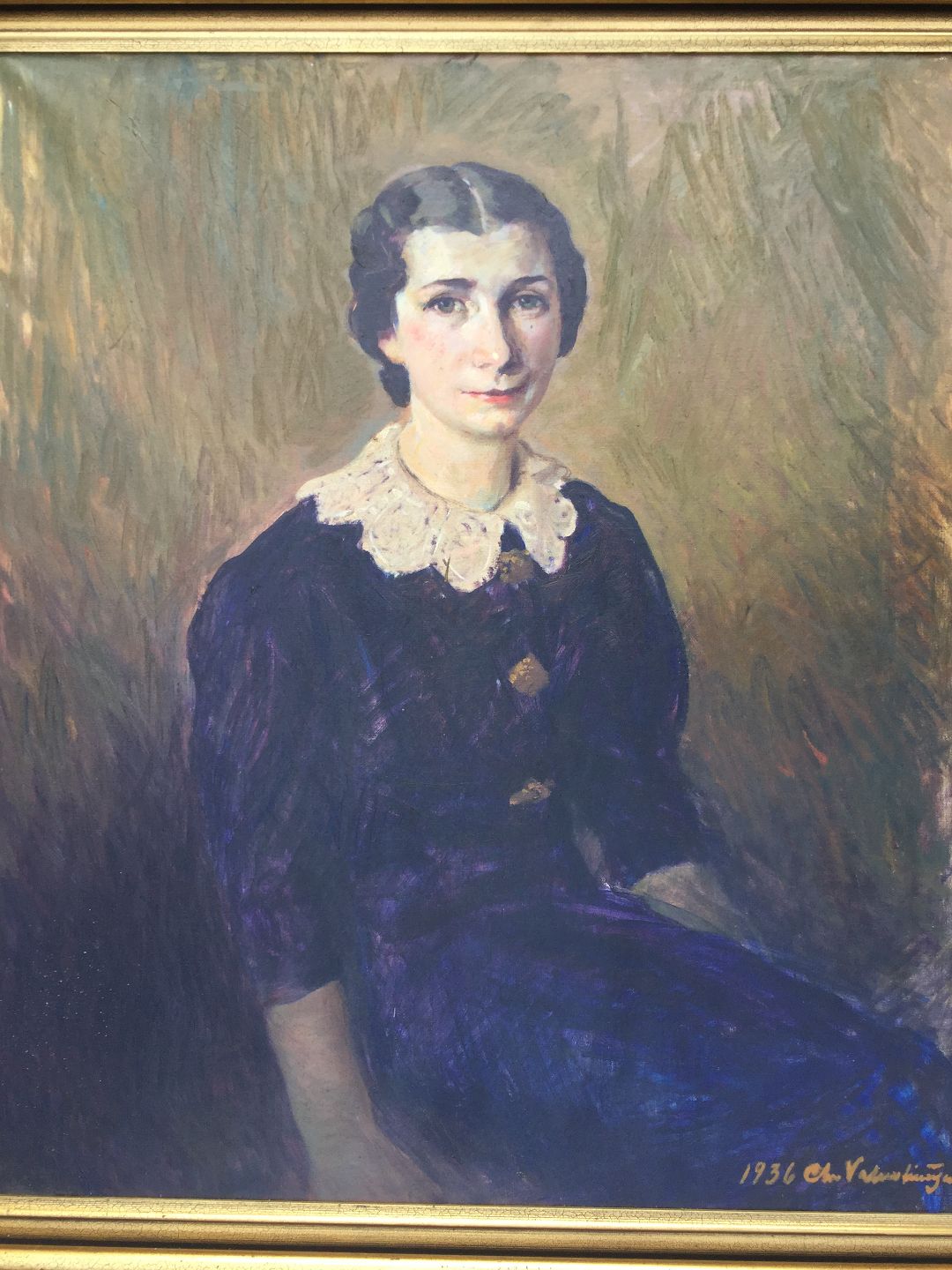 Maleri af Christian Valentinussen - Portræt af siddende ung kvinde 1936.
