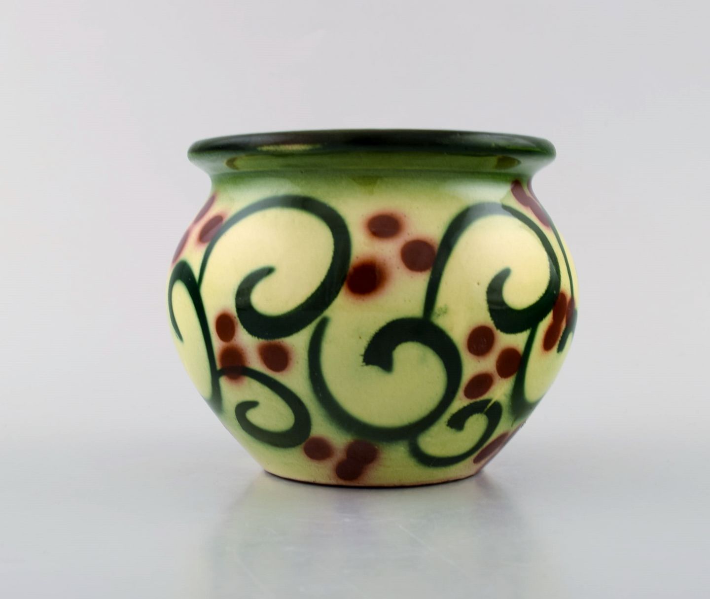 Dansk keramiker. Lille urtepotte i glaseret keramik. 1950/60'erne.
