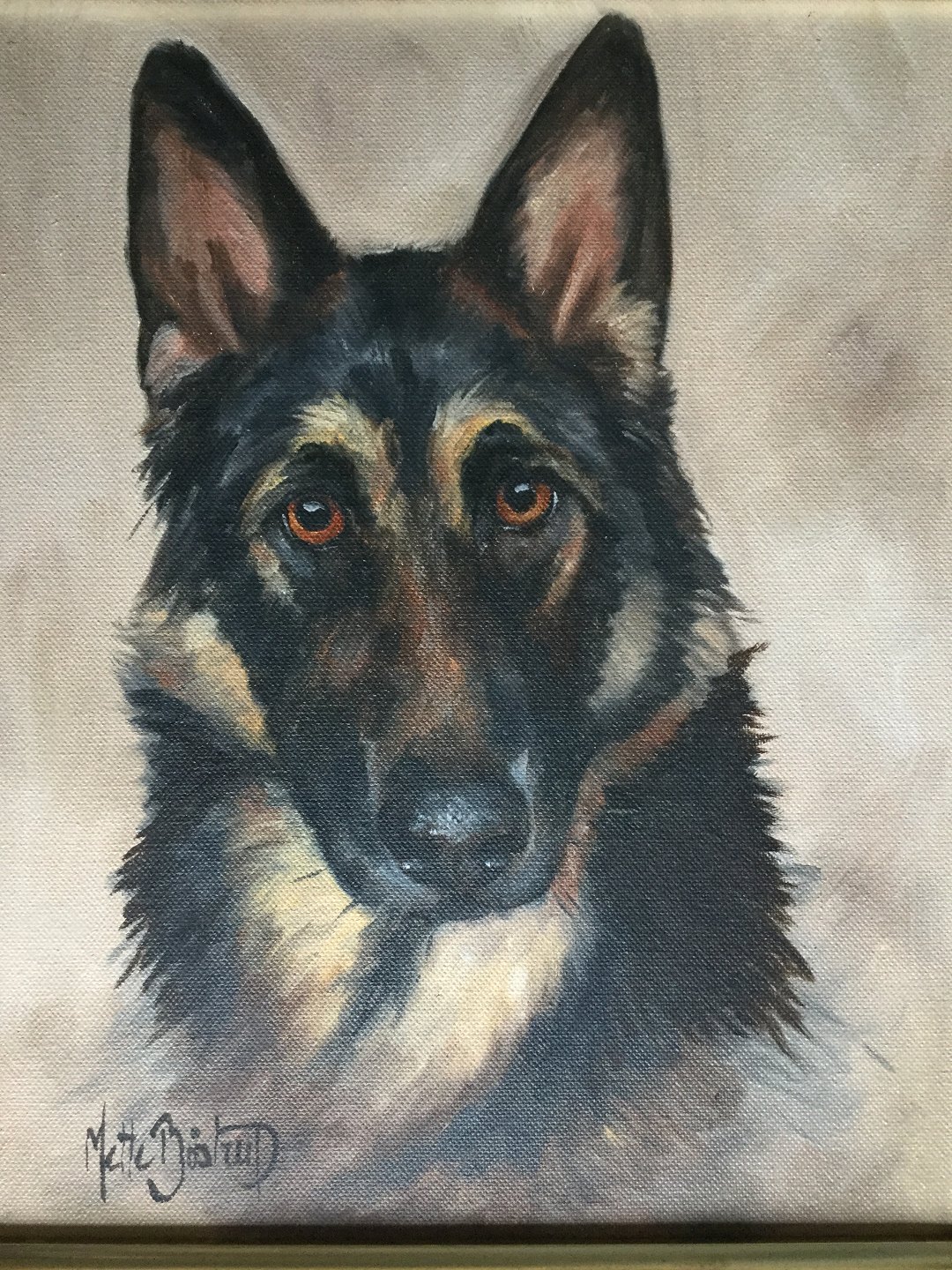 Maleri af Mette Bøstrup - Portræt af en Schæfer.