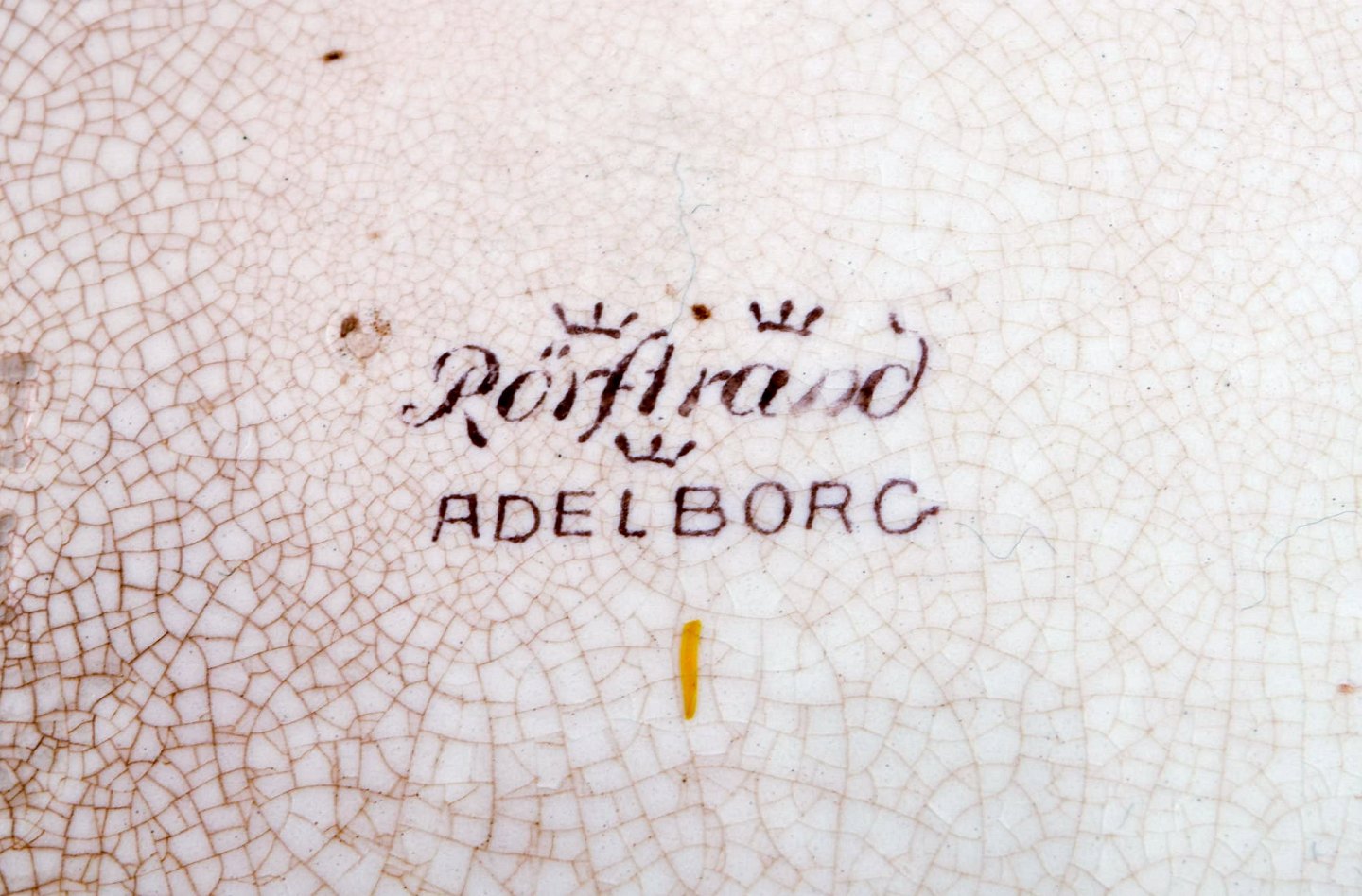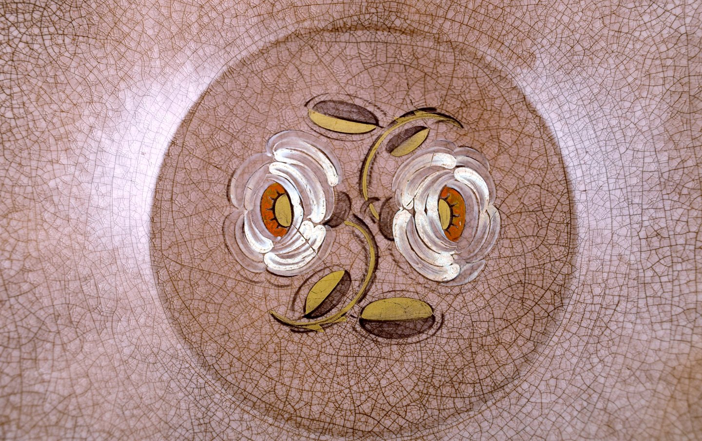 Rörstrand. Stor "Adelborg" skål i glaseret krakkeleret fajance med blomstermotiv. 1920/30'erne.