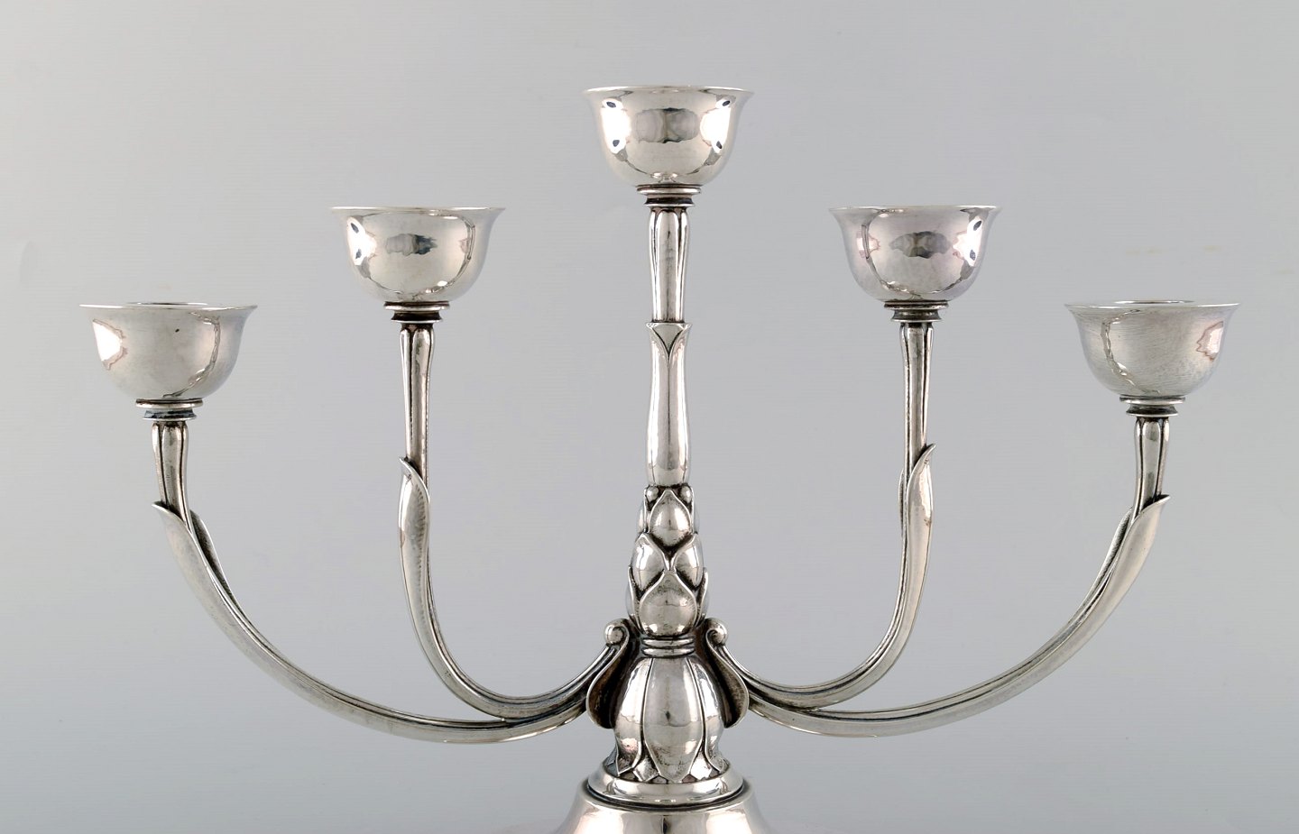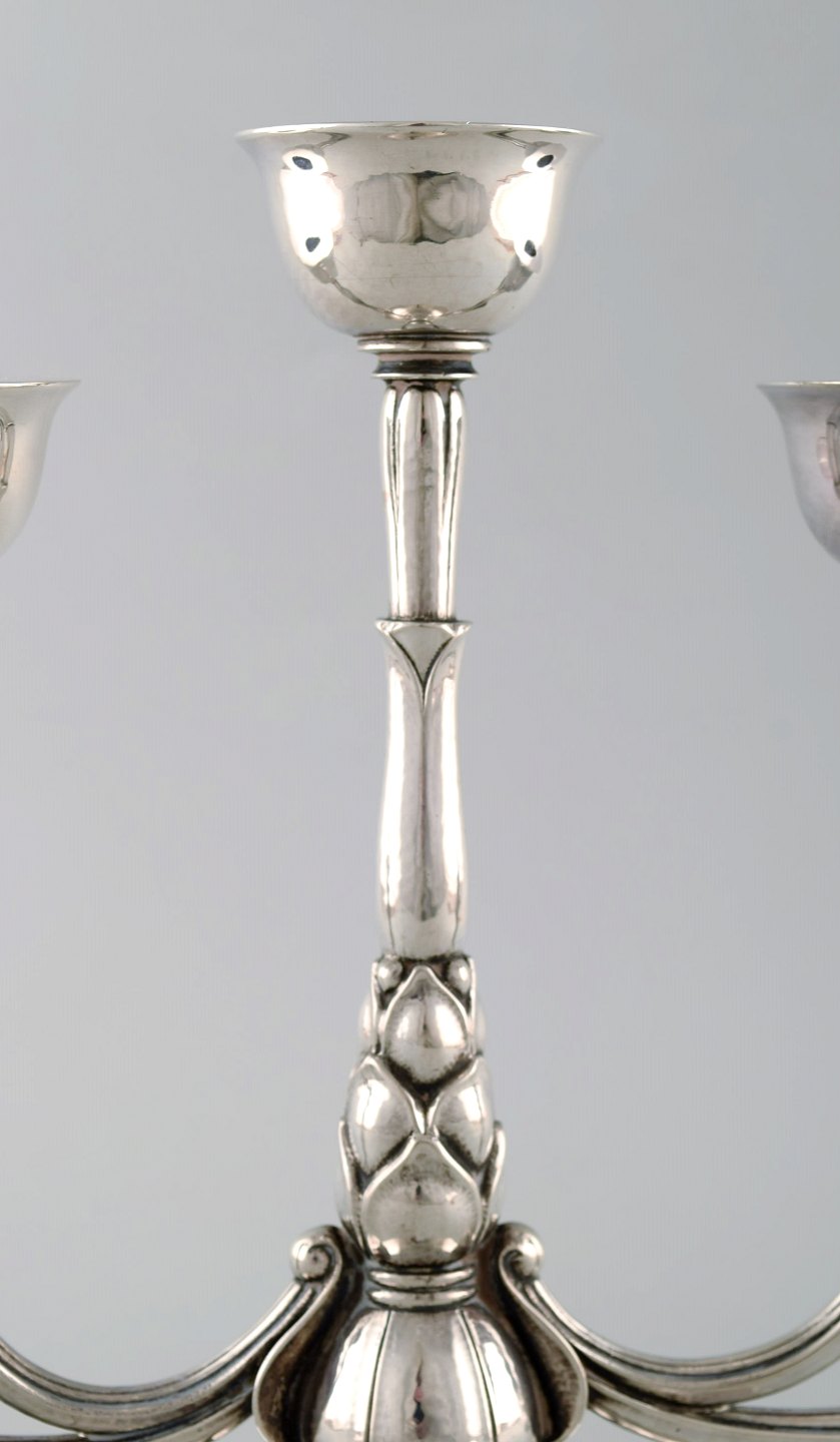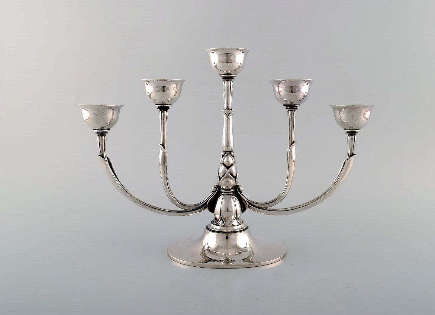 Harald Nielsen for Georg Jensen. Art deco "Pyramide" kandelaber i sterlingsølv. Dateret 1933-44. Dessin 537A.