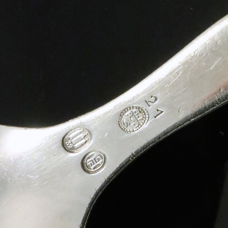 Ske #21 i sølv udført hos Georg Jensen. Stemplet GI 830s, three towers 32(1932).