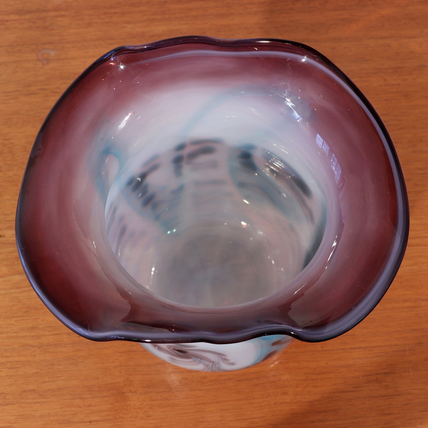 Vase i kunstglas med utydelig siganatur i bunden lavet i 1992.