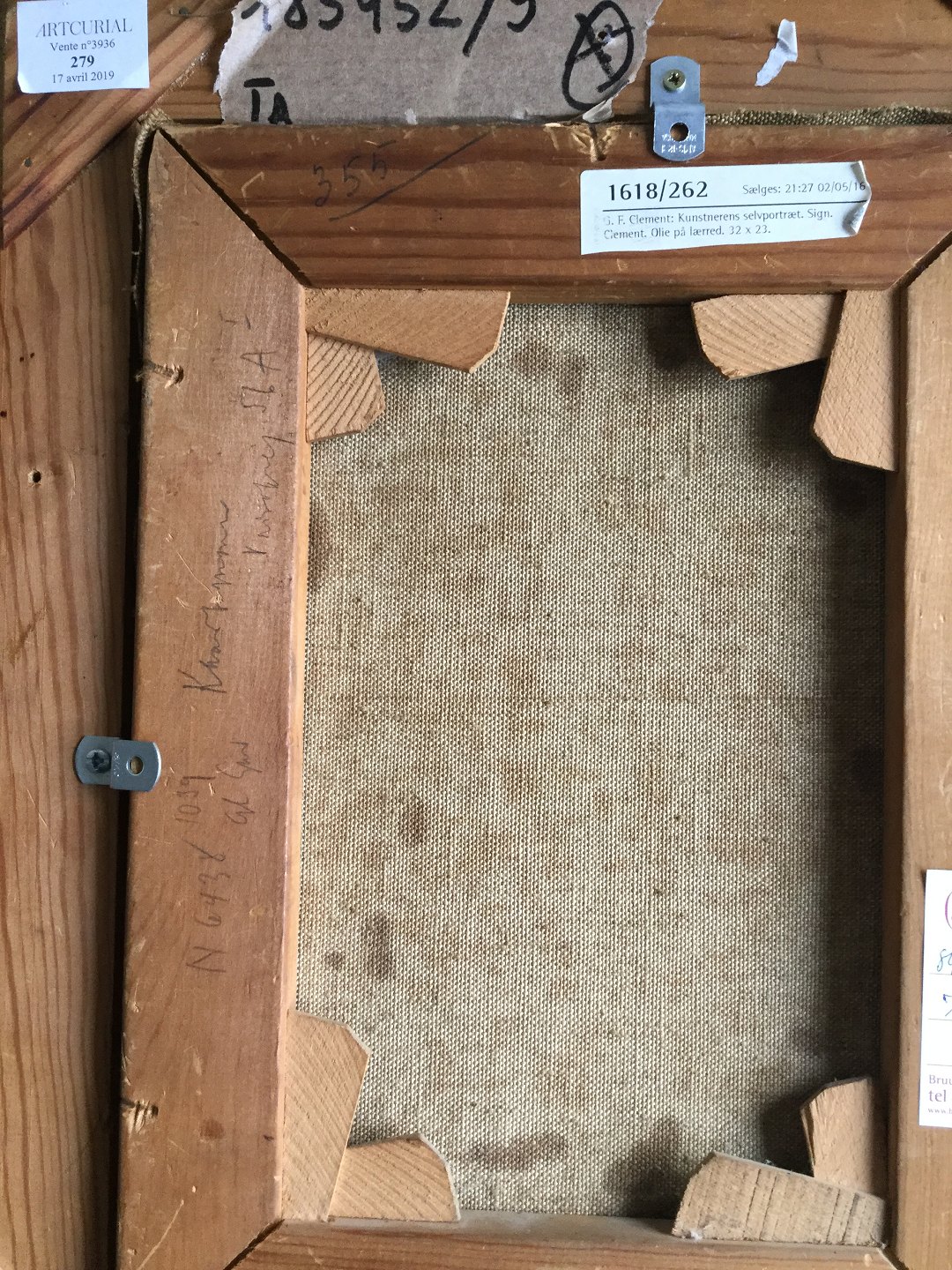 Bagpå flere auktionsmærkater fra bl.a. Bruun Rasmussen.