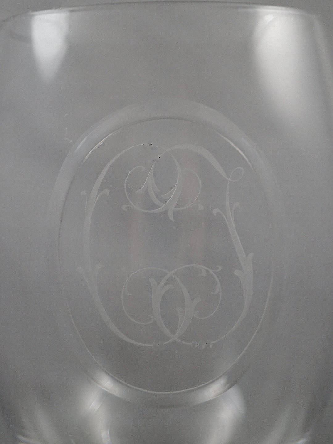 Kastrup Glasværk. Erindringsglas, med ætset motiv, der er brugt blomsterkrans som motiv