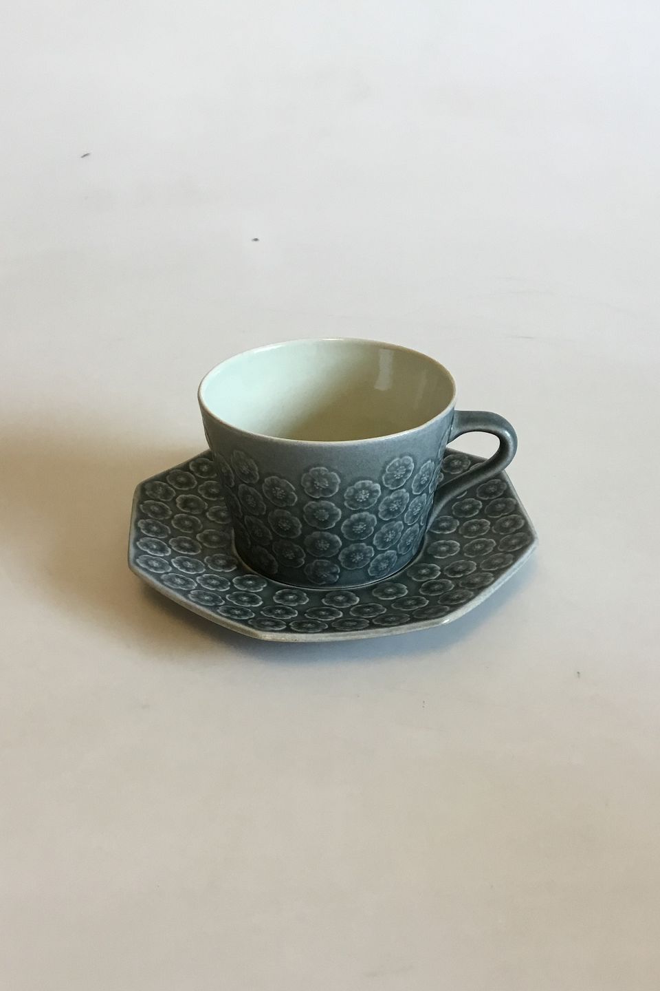 Bing og Grøndahl / Kronjyden Grøn Azur Kaffekop med ottekantet underkop. Designet af Jens Quistgaard