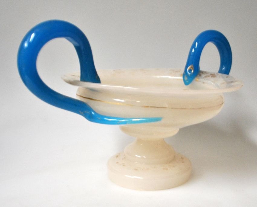 Opsats i lyst opaline glas med blå håndtag, 19. årh.