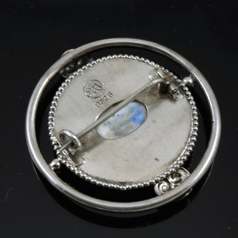 Erik Magnussen / Royal Copenhagen. Skønvirke Broche i Sølv med porcelæn.