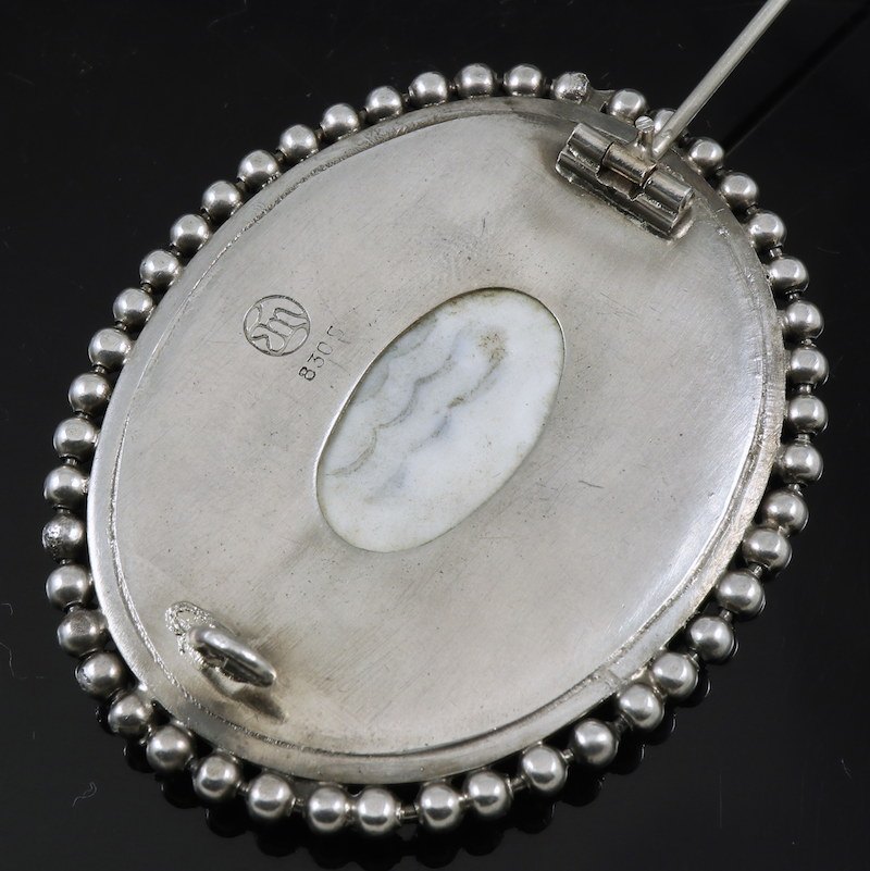 Erik Magnussen / Royal Copenhagen. Art Nouveau Silver Brooch with Porcelain.