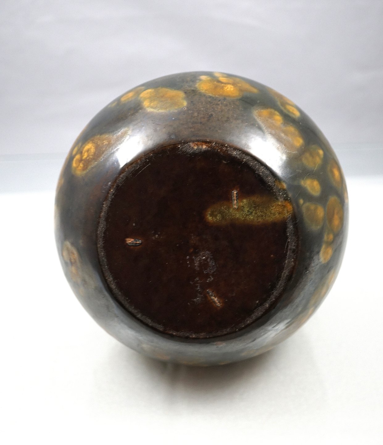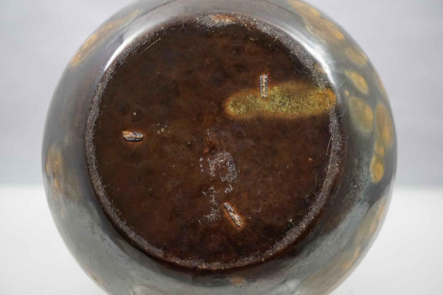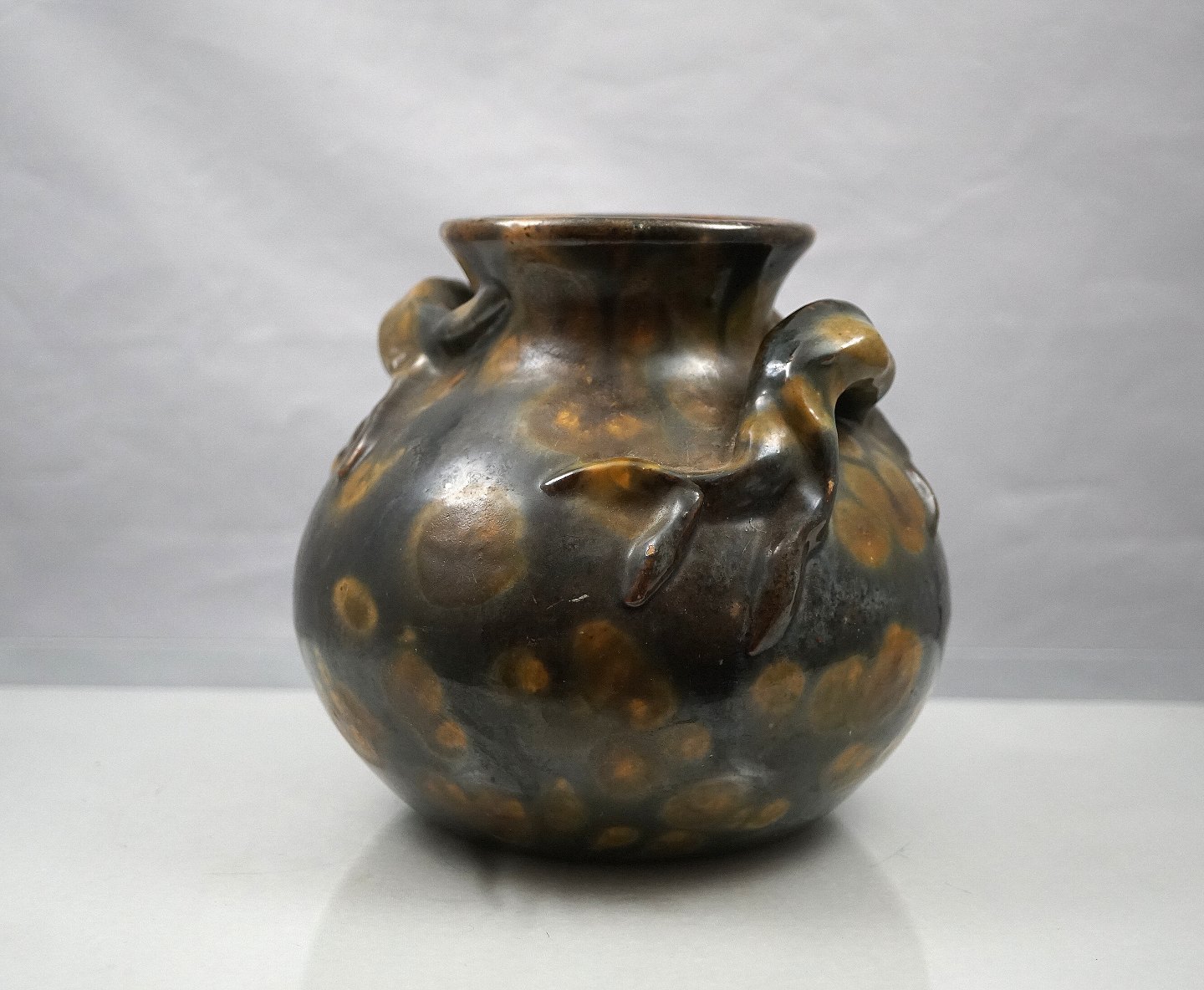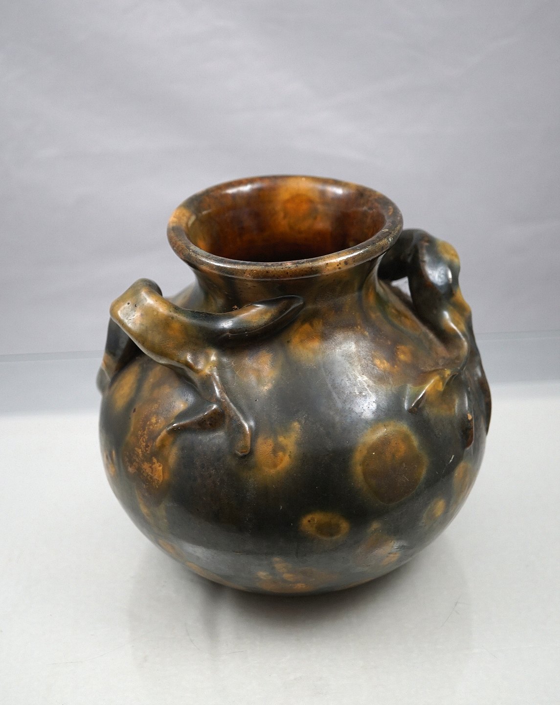 Brunmeleret keramik vase, med hanke, der sat på så det ligner rødder