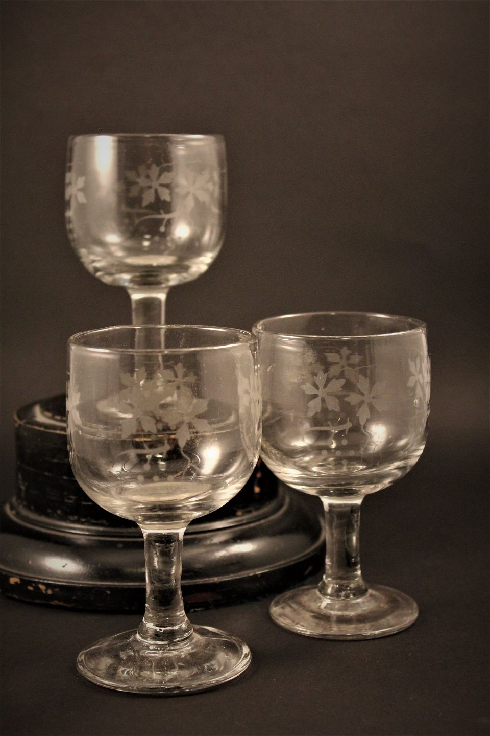 5 stk. gamle Fransk mundblæste vin glas med slebne vinblade.