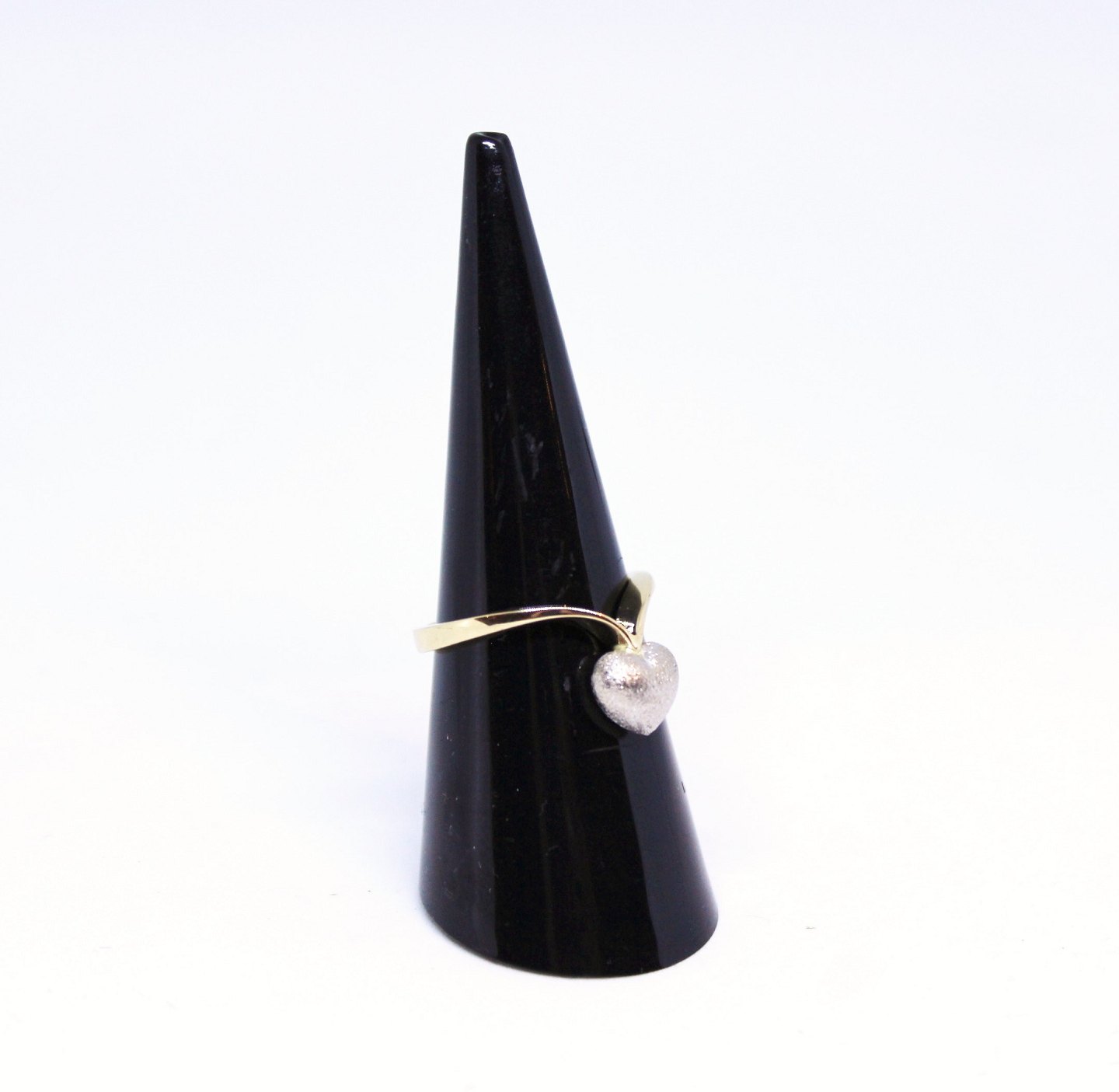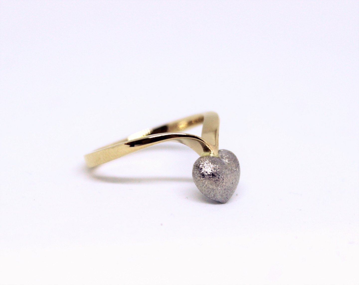 Ring af 14 karat guld dekoreret med sølv hjerte og stemplet mpg.