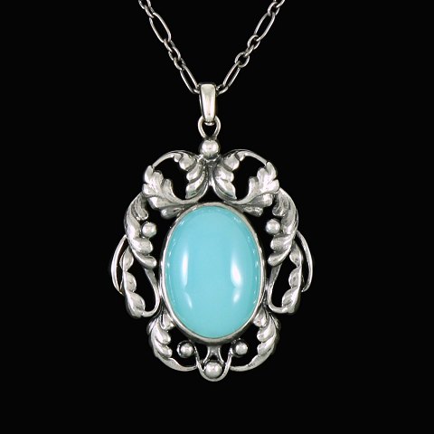Georg Jensen. Sterling Silver Pendant #73 with Aquaprase - Limited Edition.