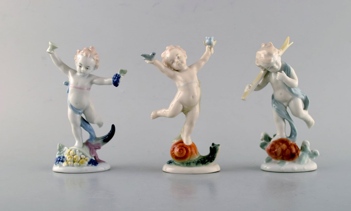 Tre Ilmenau porcelænsfigurer. Dansende drengebørn. 1970'erne