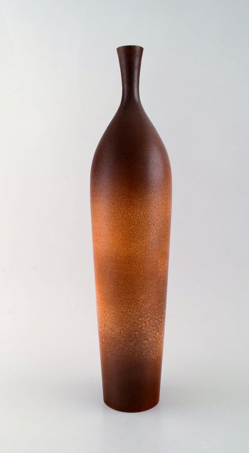 Suzanne Ramie (1905-1974) for Atelier Madoura. Stor vase i glaseret stentøj. Smuk glasur i lyse brune toner og moderne design. 1940'erne.