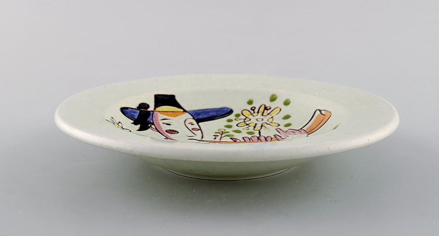 Carl-Harry Stålhane for Rörstrand. Håndmalet skål i glaseret stentøj dekoreret med mand i kornmark. 1960'erne.