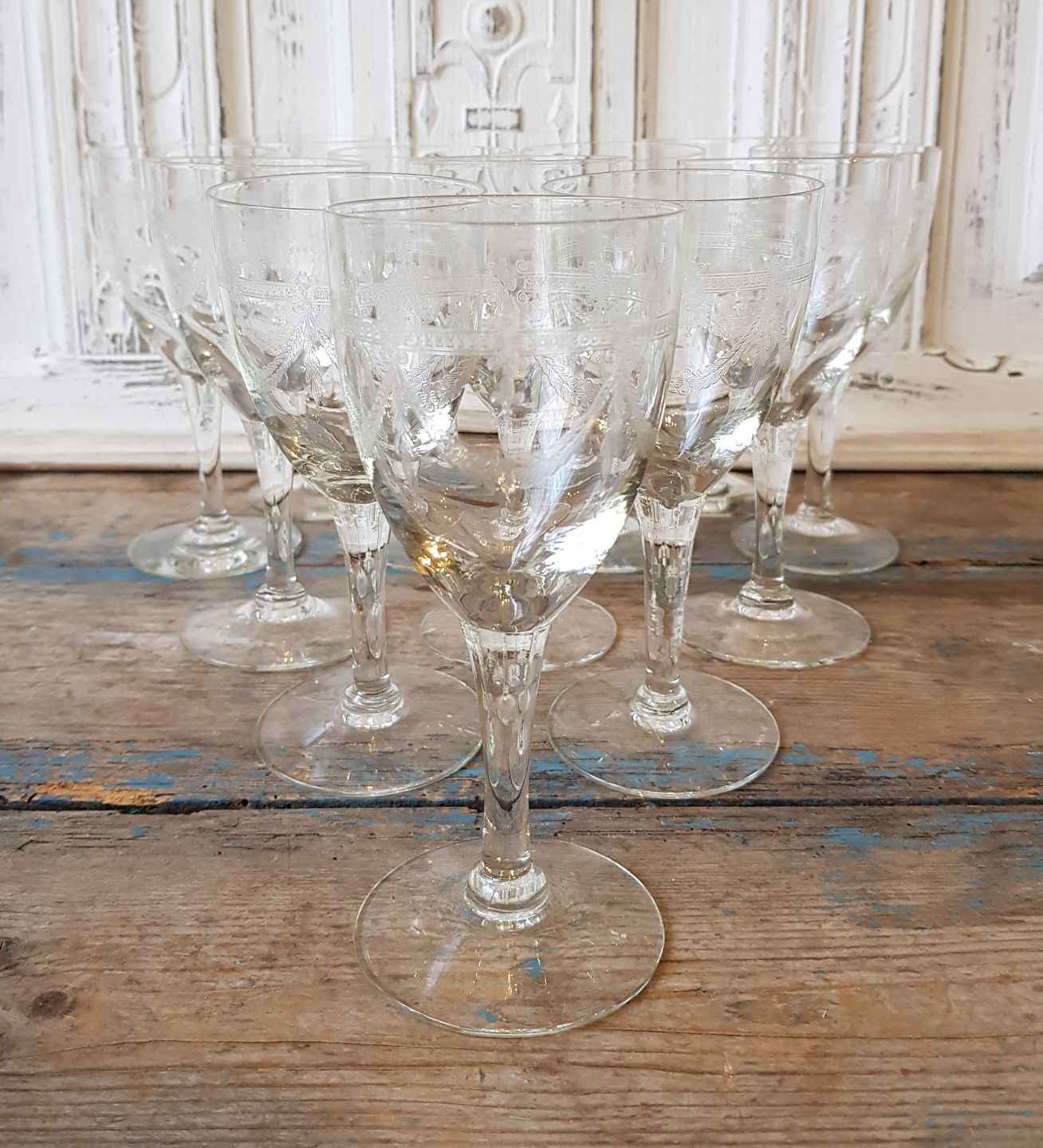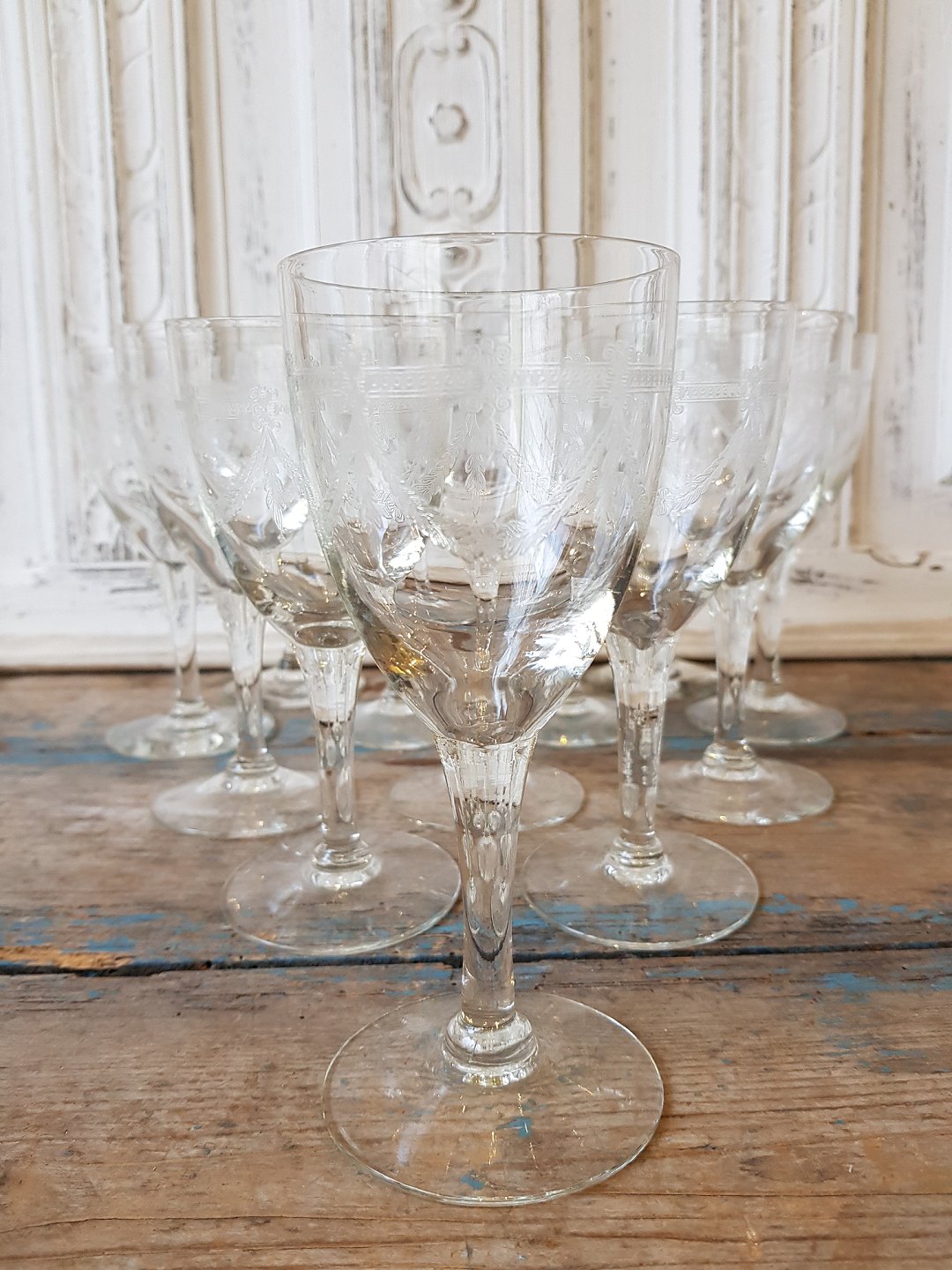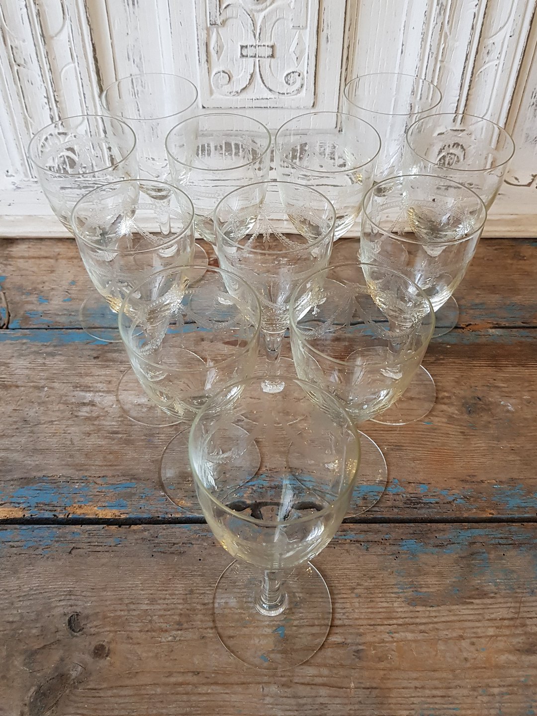 Sæt på 12 stk hvidvinsglas dekoreret med guillocheret bort