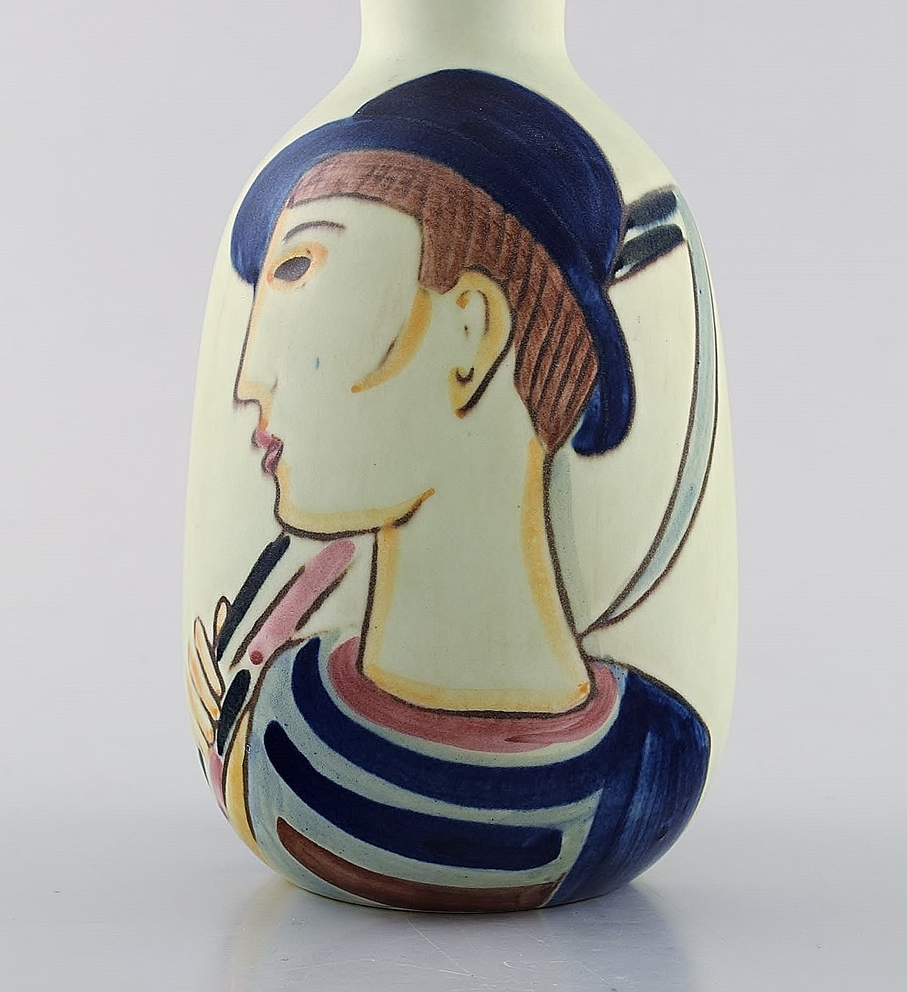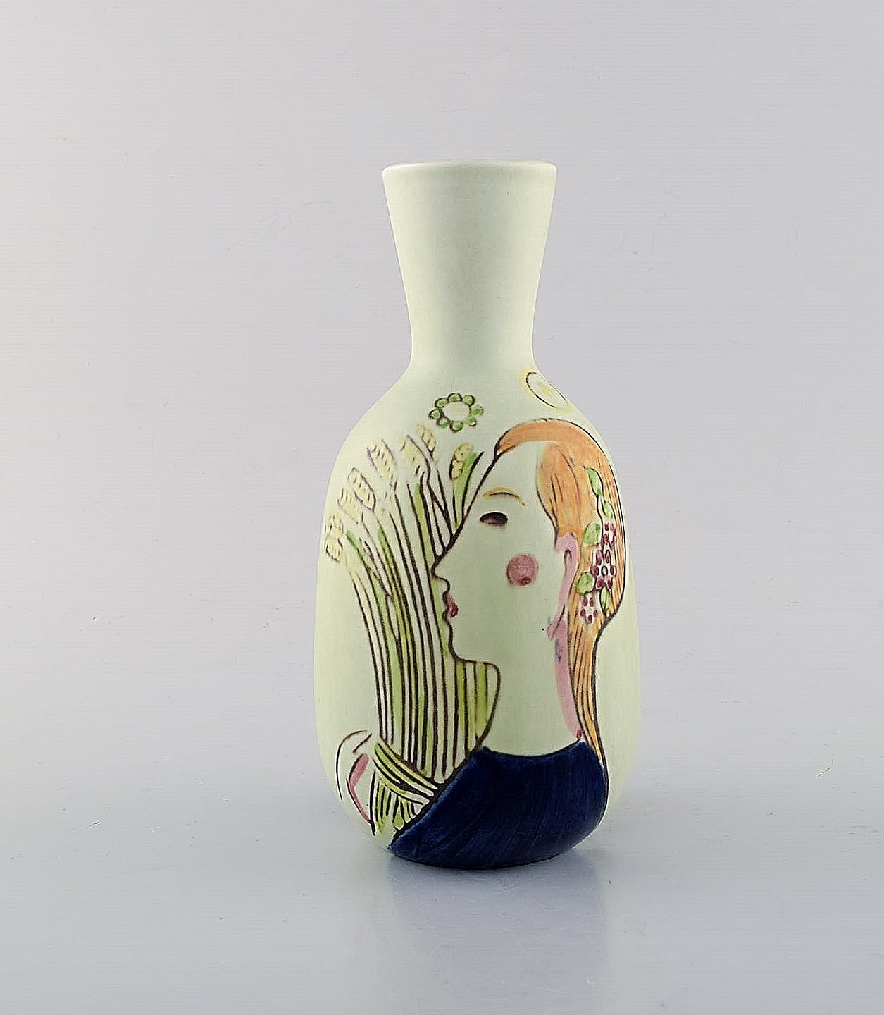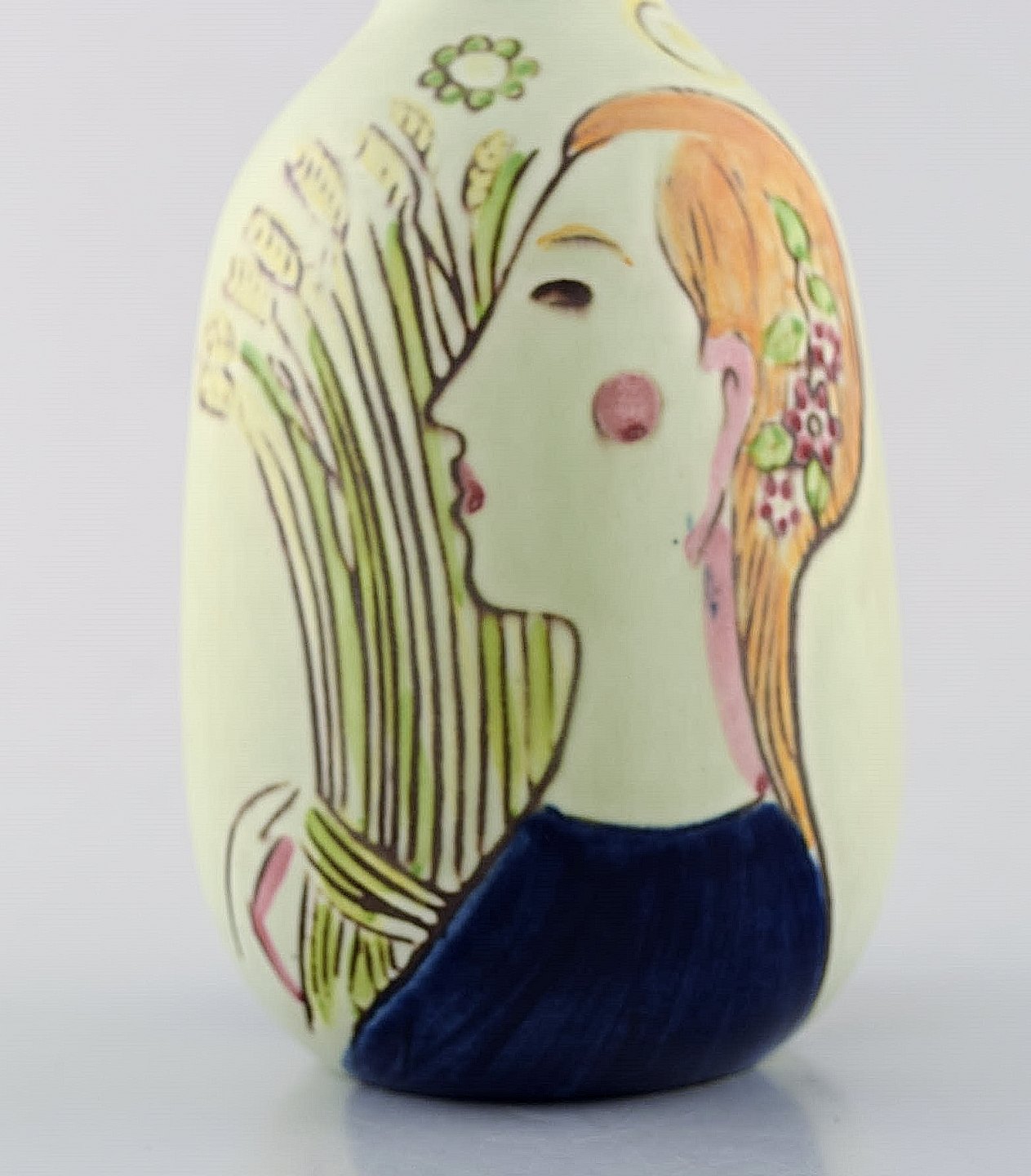 Carl-Harry Stålhane for Rörstrand/Rørstrand. Vase i glaseret keramik. Håndmalet bonde motiv. 1960'erne.