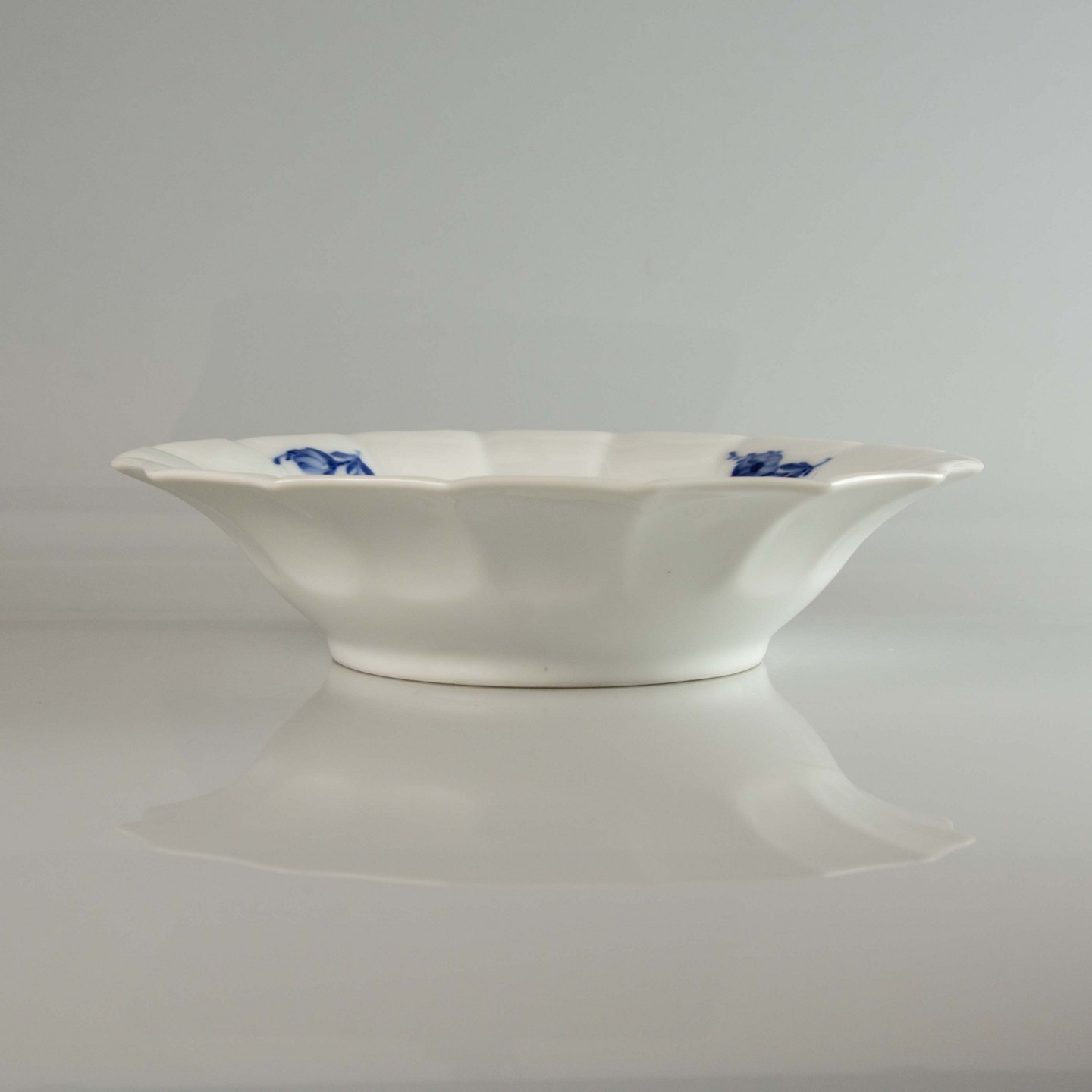 Skål i porcelæn og dekoraktion af blå blomst.