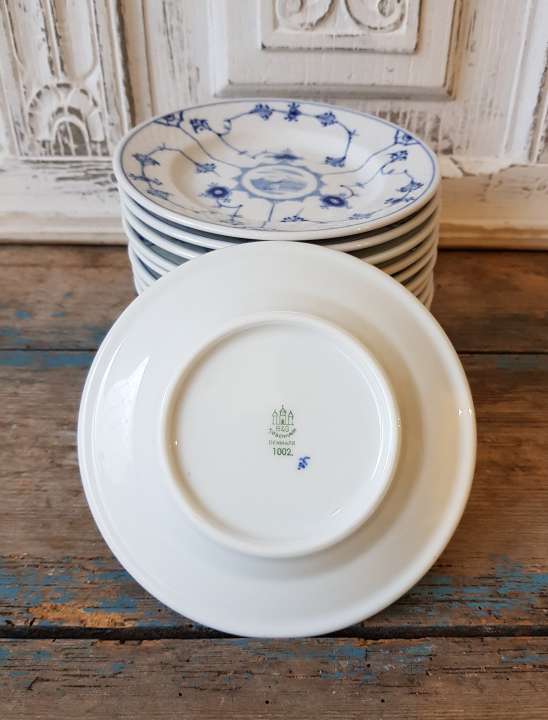B&G Blåmalet Hotel porcelæn - kagetallerken med logo no. 1002, 15,5 cm.