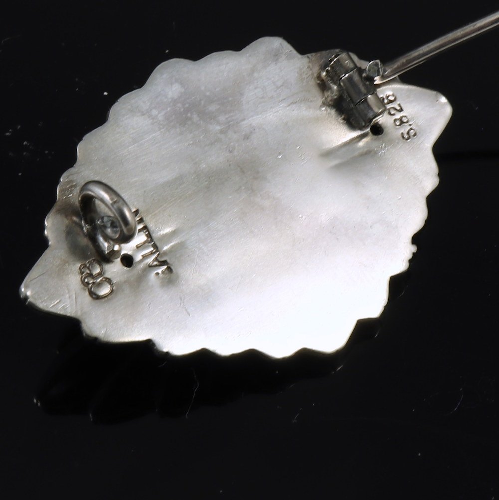 Mogens Ballin 1871-1914. Skønvirke Broche i sølv grøn agat.