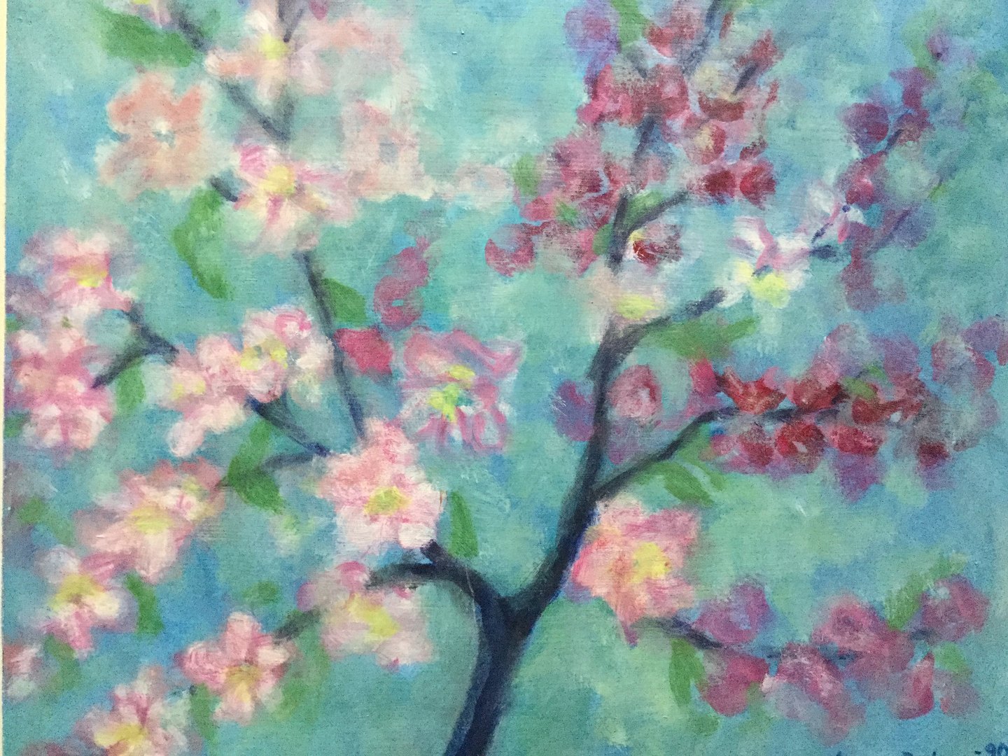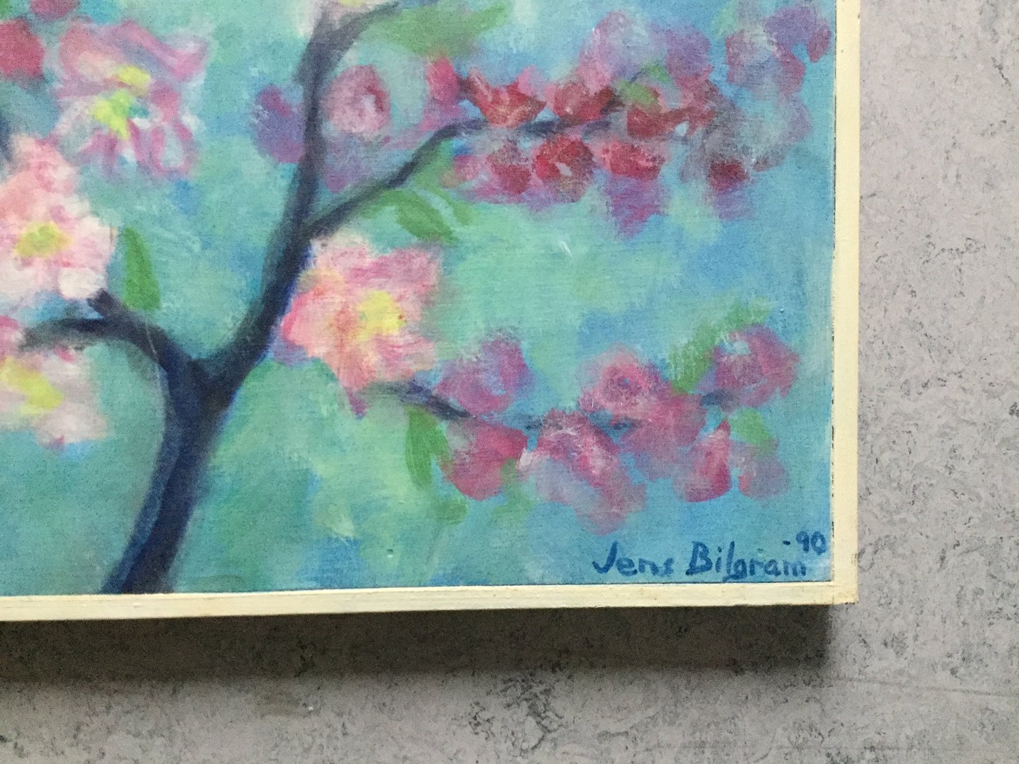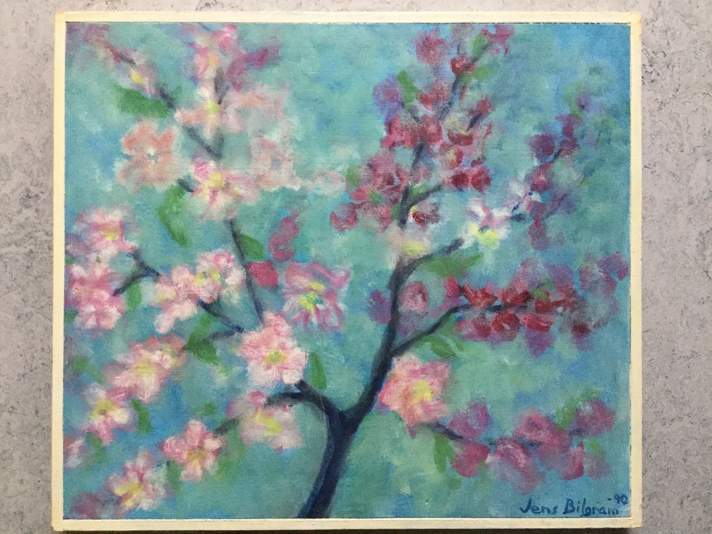 Maleri af Jens Bilgram - Blomstrende æblegrene 1990.