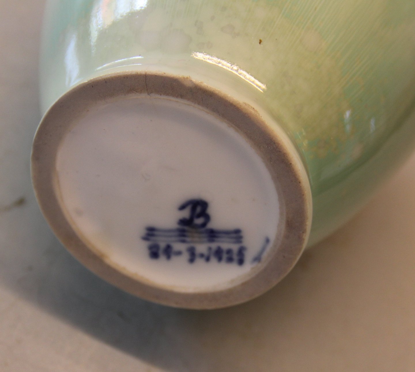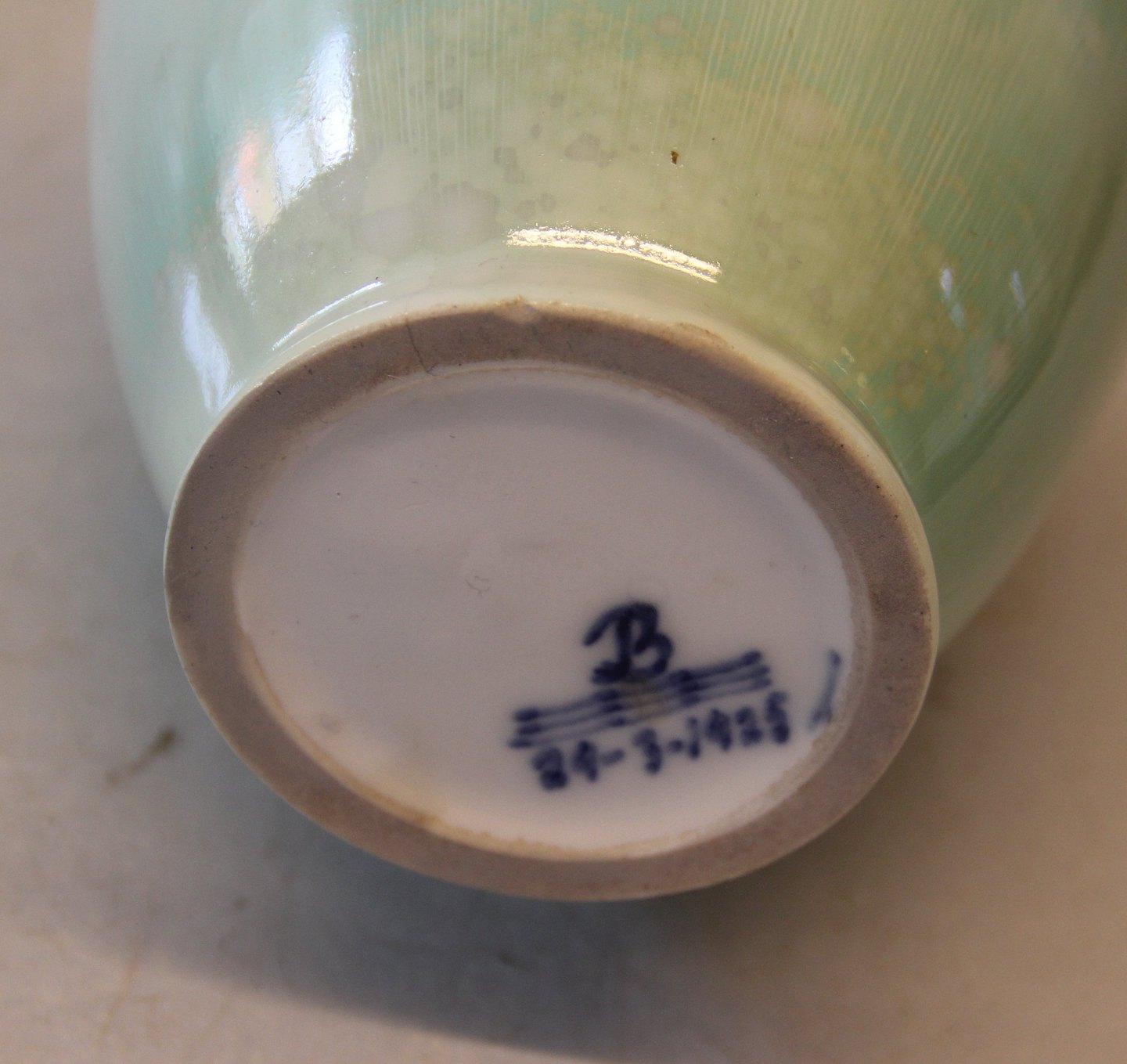 Kgl. Vase 24 cm Mint grønt crystal glasur 21 - 3 - 1925 Søren Berg fra Royal Copenhagen