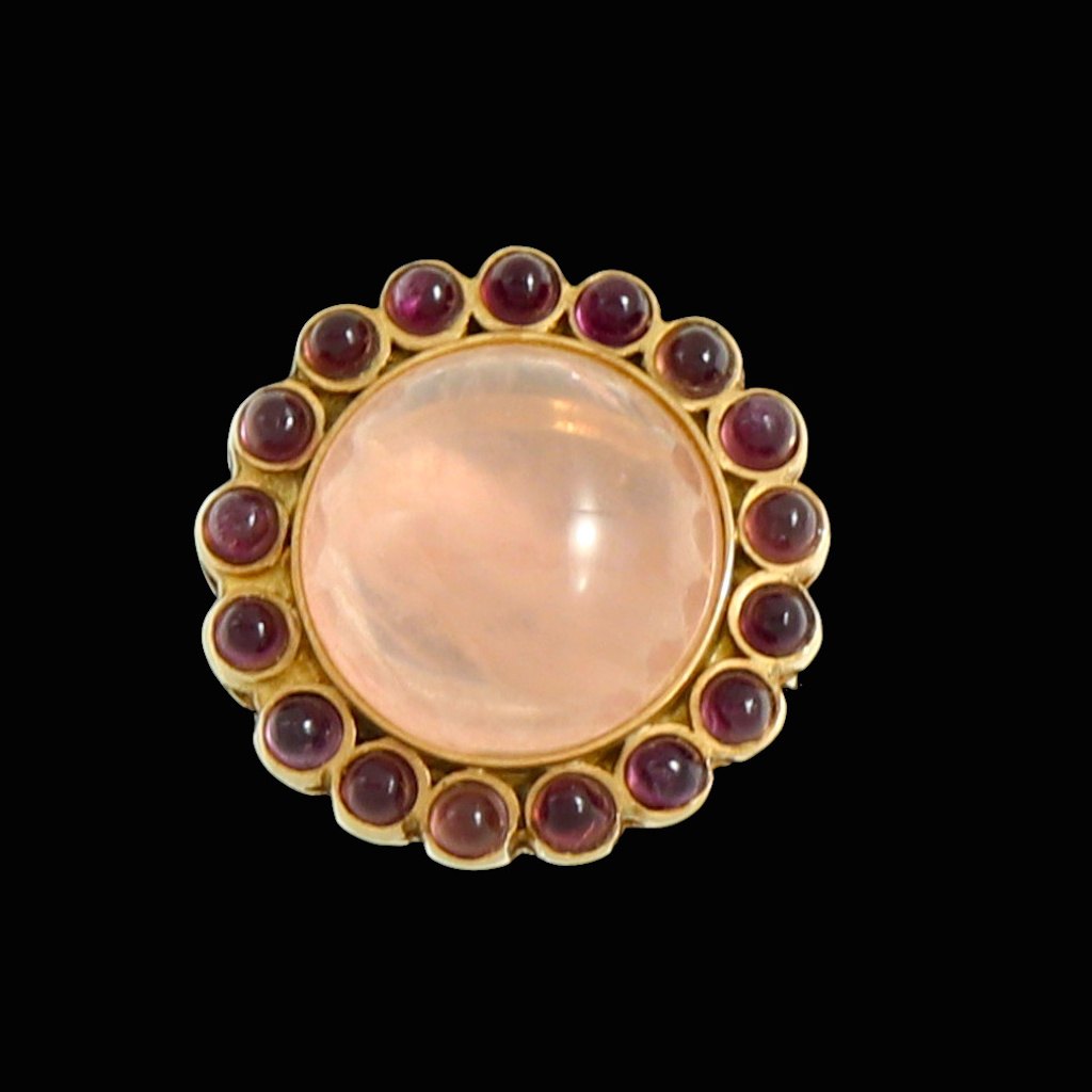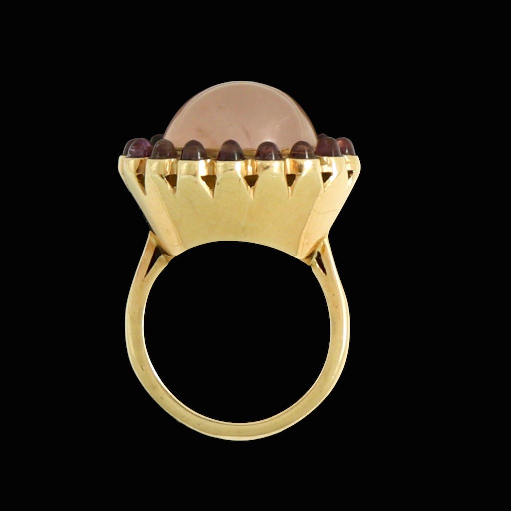 Bjarne B. Knudsen. Cocktailring i 18k guld med Rosa kvarts og ametyster.