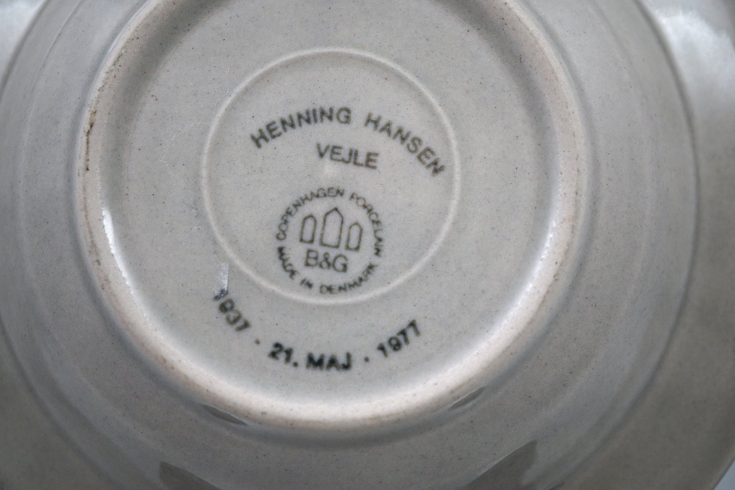 Bing & Grøndahl stenstøj stel rune. Asiet med logo. Tekst på bagsiden : Henning Hansen, Vejle. 1937 - 21. maj - 1977