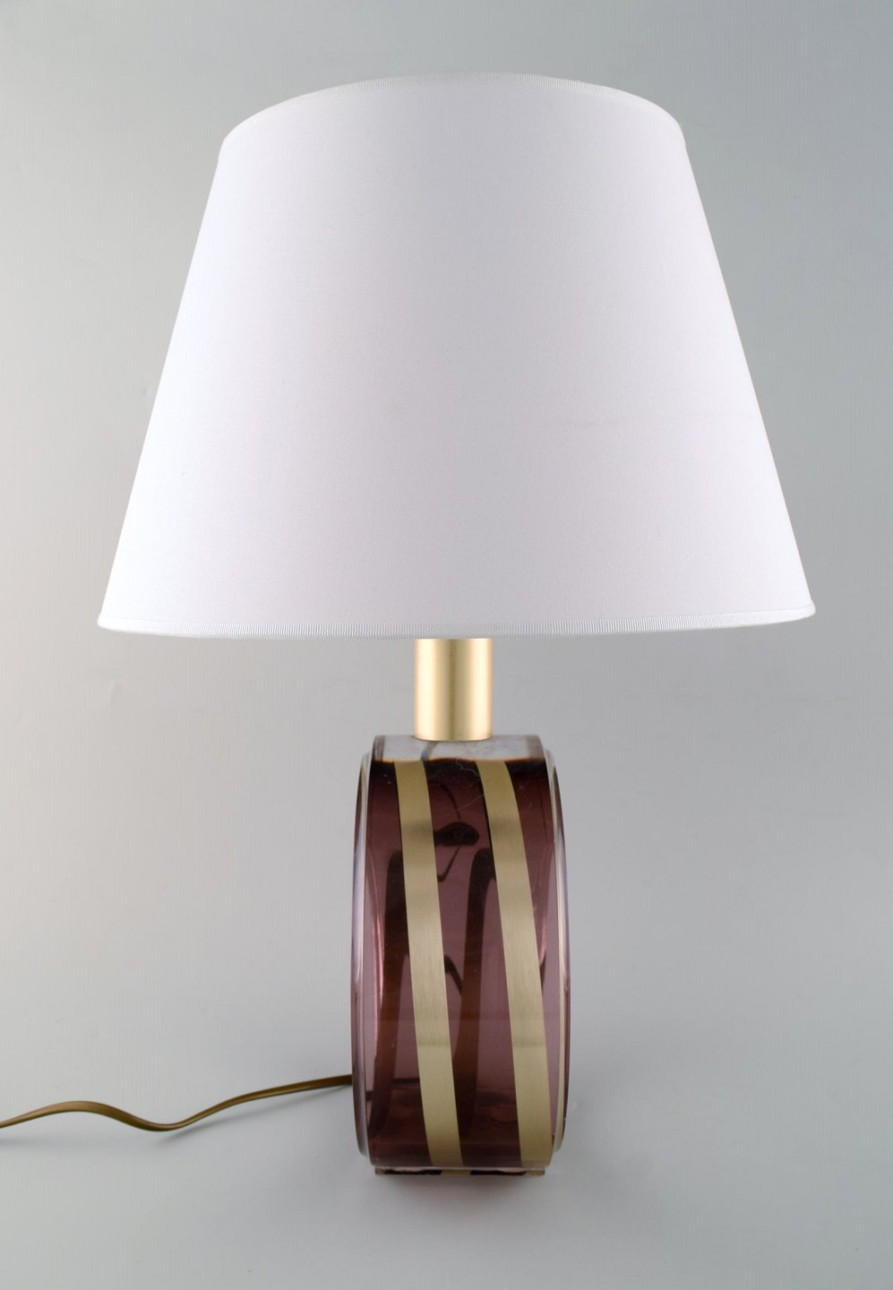 Italiensk design. Bordlampe af indfarvet plexiglas og messing. 1970'erne.