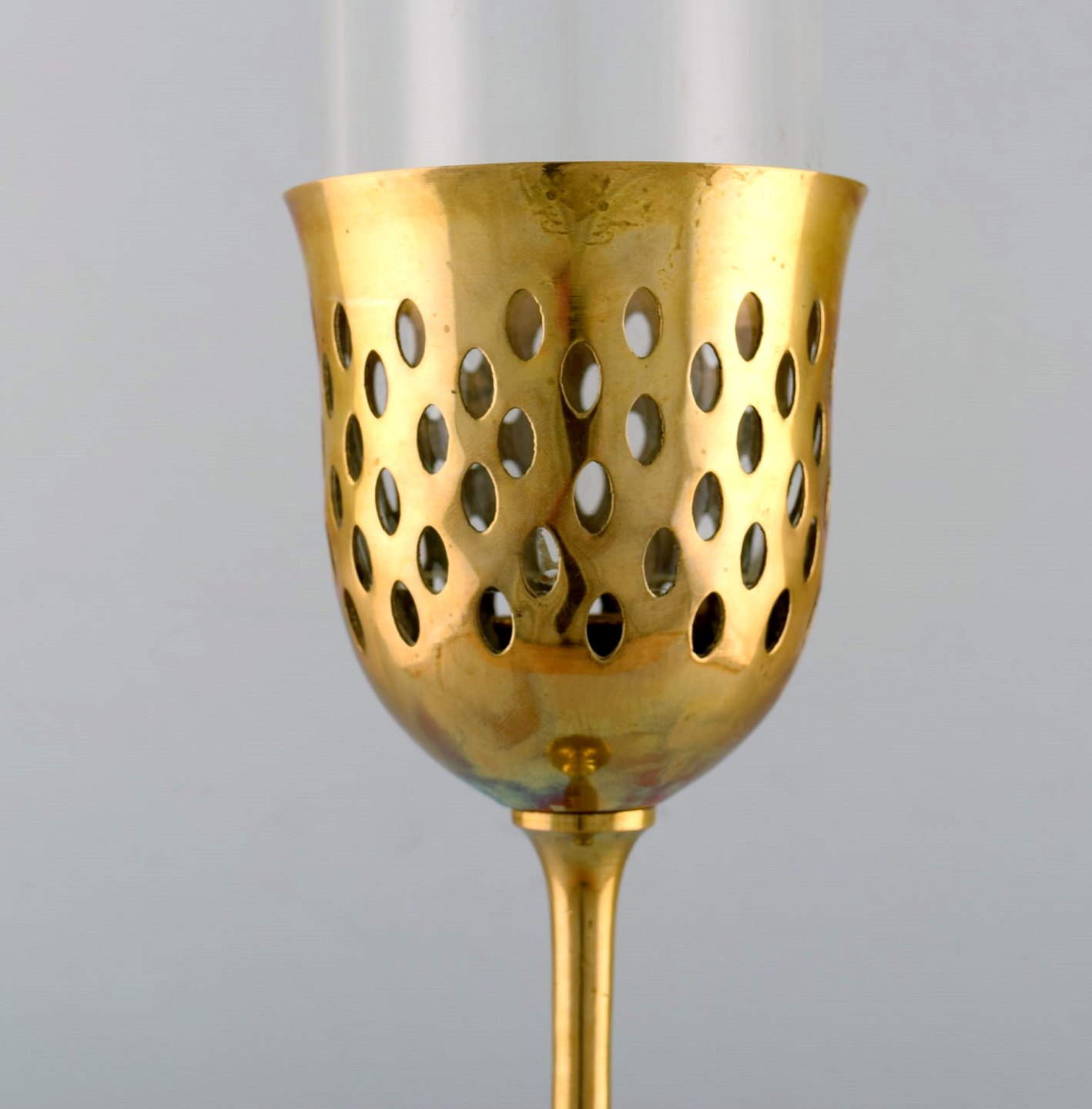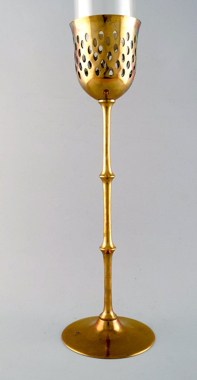 Bjørn Wiinblad (1918-2006). Høj "Hurricane" stage af messing med blåtonet glas. 1970'erne.