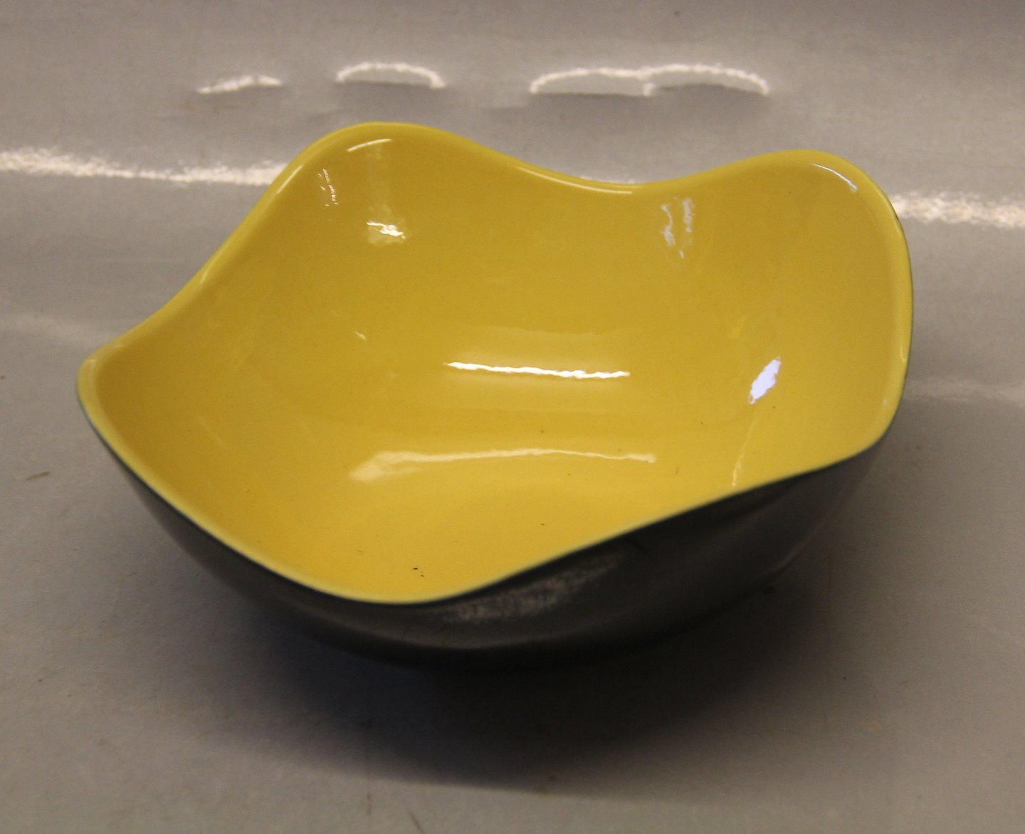 Skål 4-sidet 7 x 17 cm Congo Kronjyden retrostel i gult og sort. l I fin og hel stand.