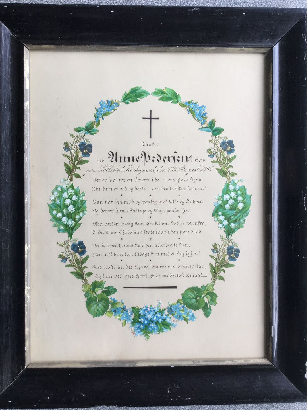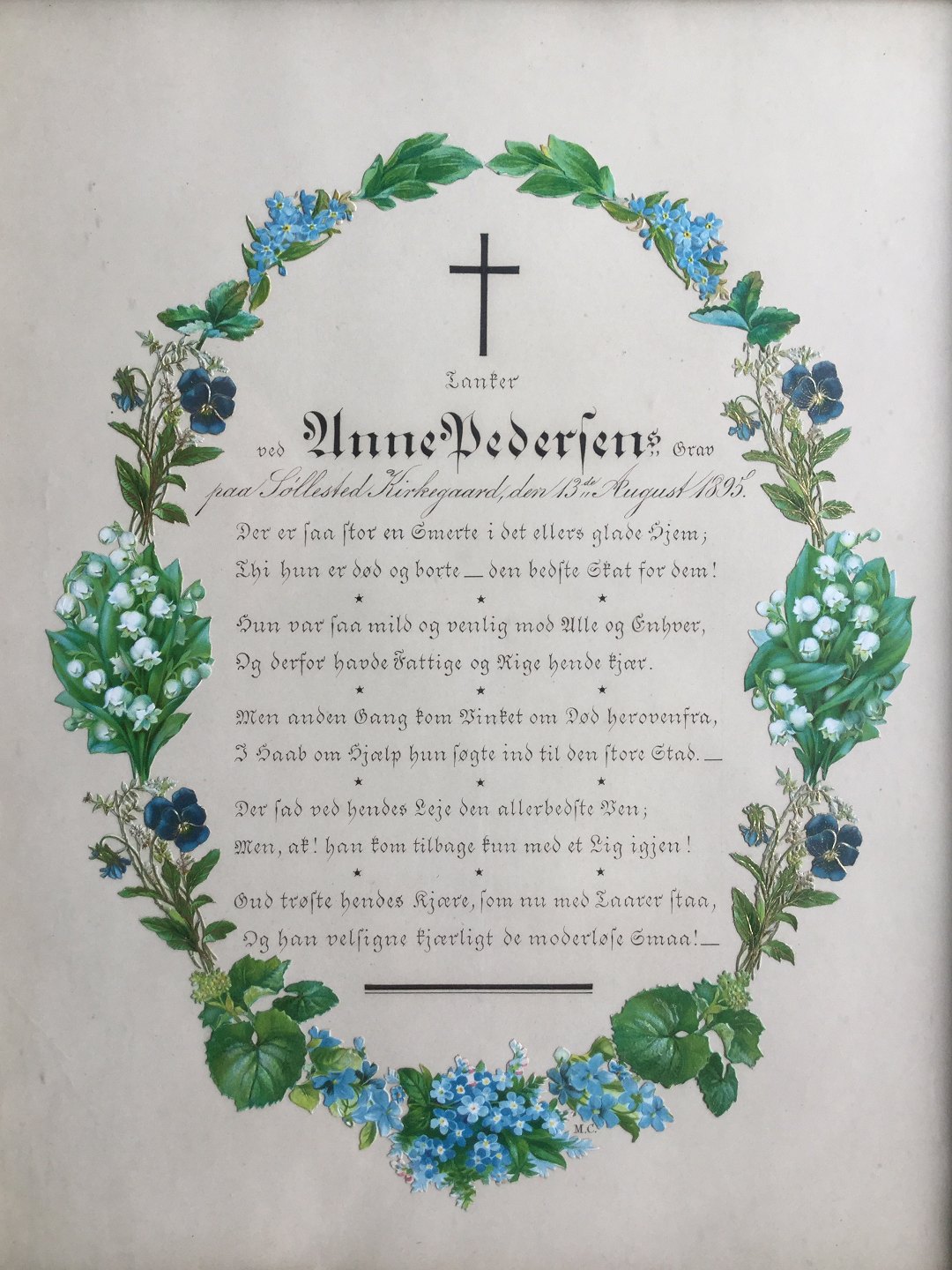 Mindevers ved Anne Pedersen's grav Søllested Kirkegaard 13/8 1895.