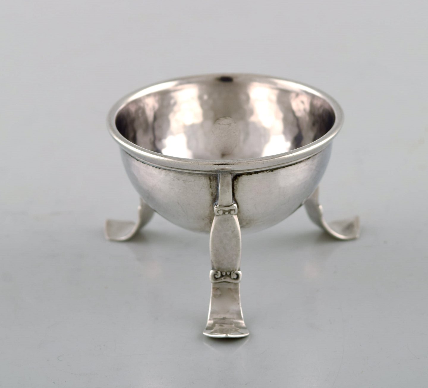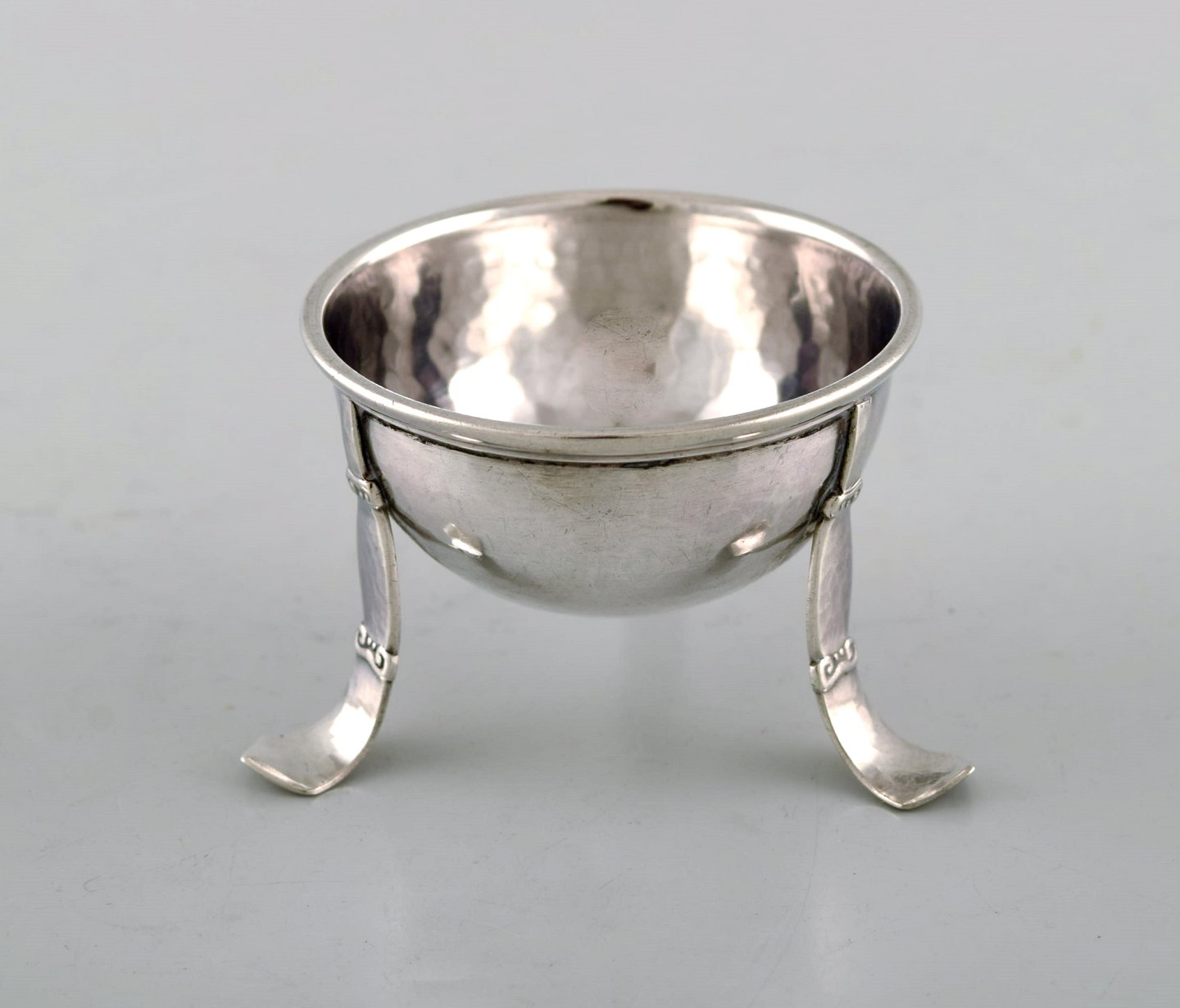 Dansk sølvsmed. Saltkar i tretårnet sølv. Dateret 1922.