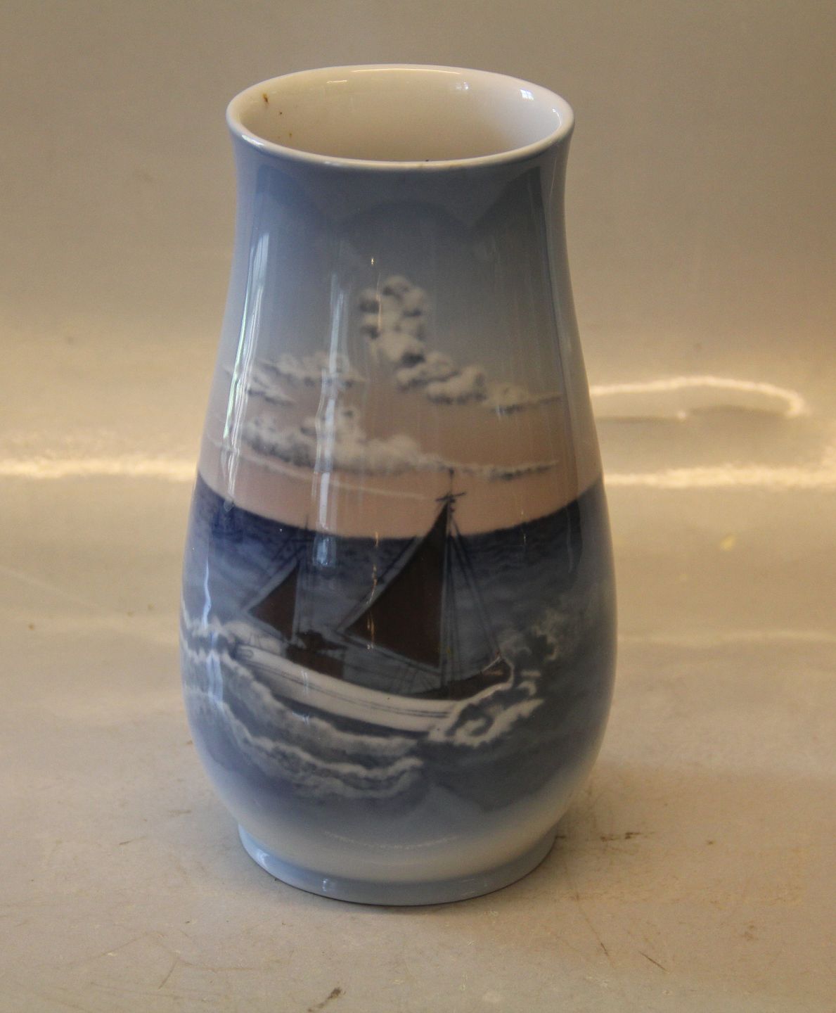 Bing & Grøndahl B&G 1302-6211 Vase med Fiskekutter 17.5 cm I fin og hel stand.
