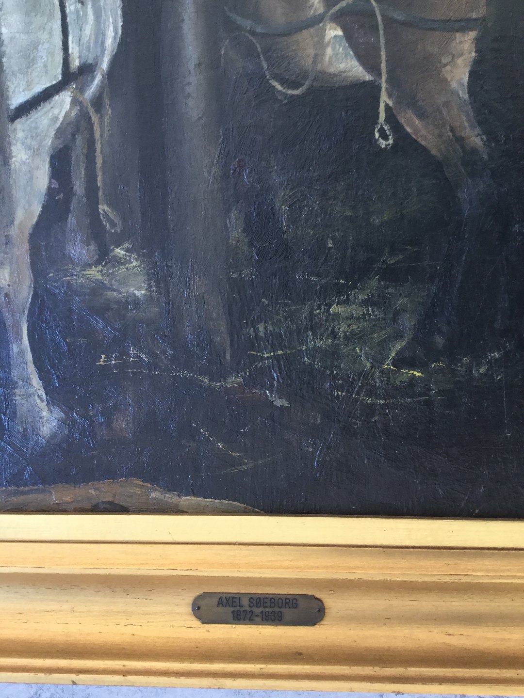 Indrammet i smuk guldramme med skilt (Axel Søeborg).