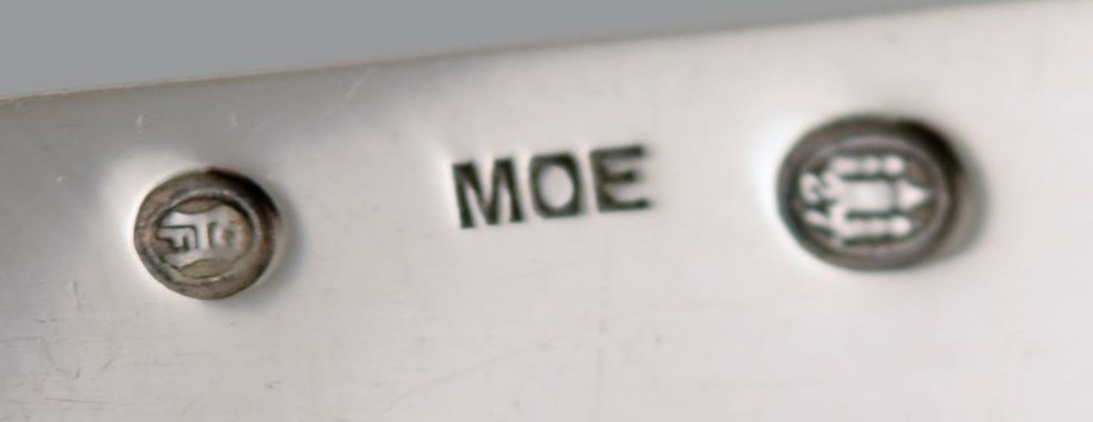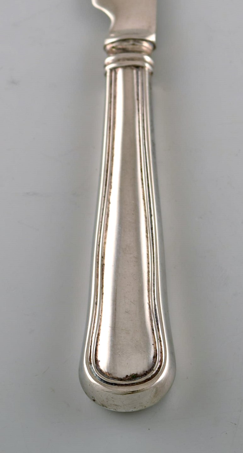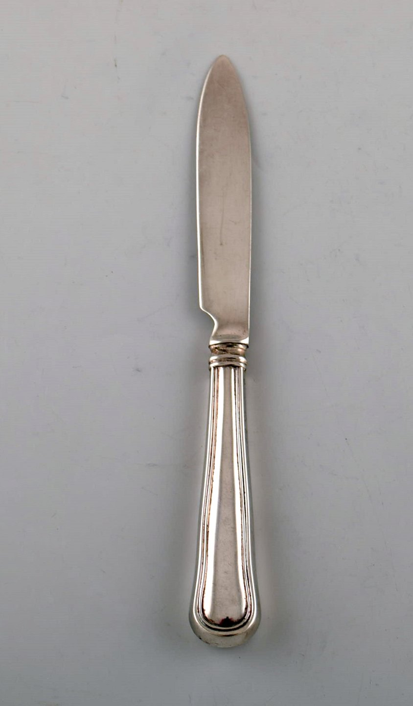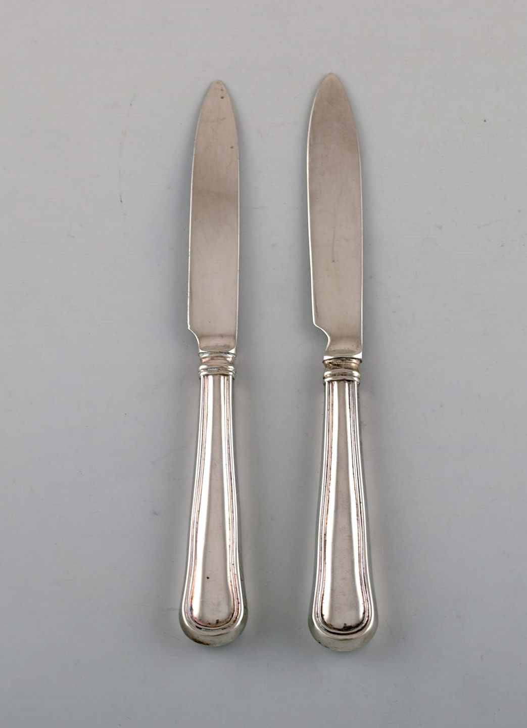 To "Dobbeltriflet" frugtknive i tretårnet helsølv. Dateret 1920'erne.
