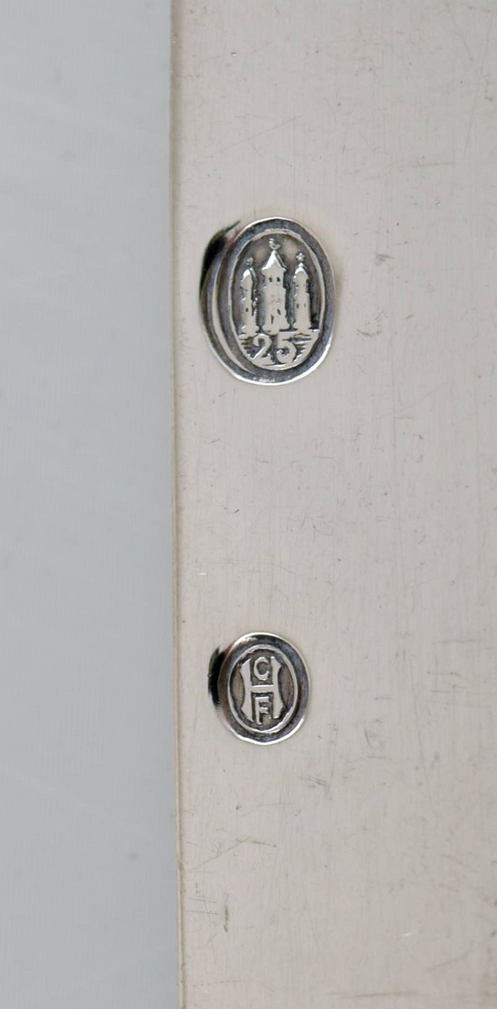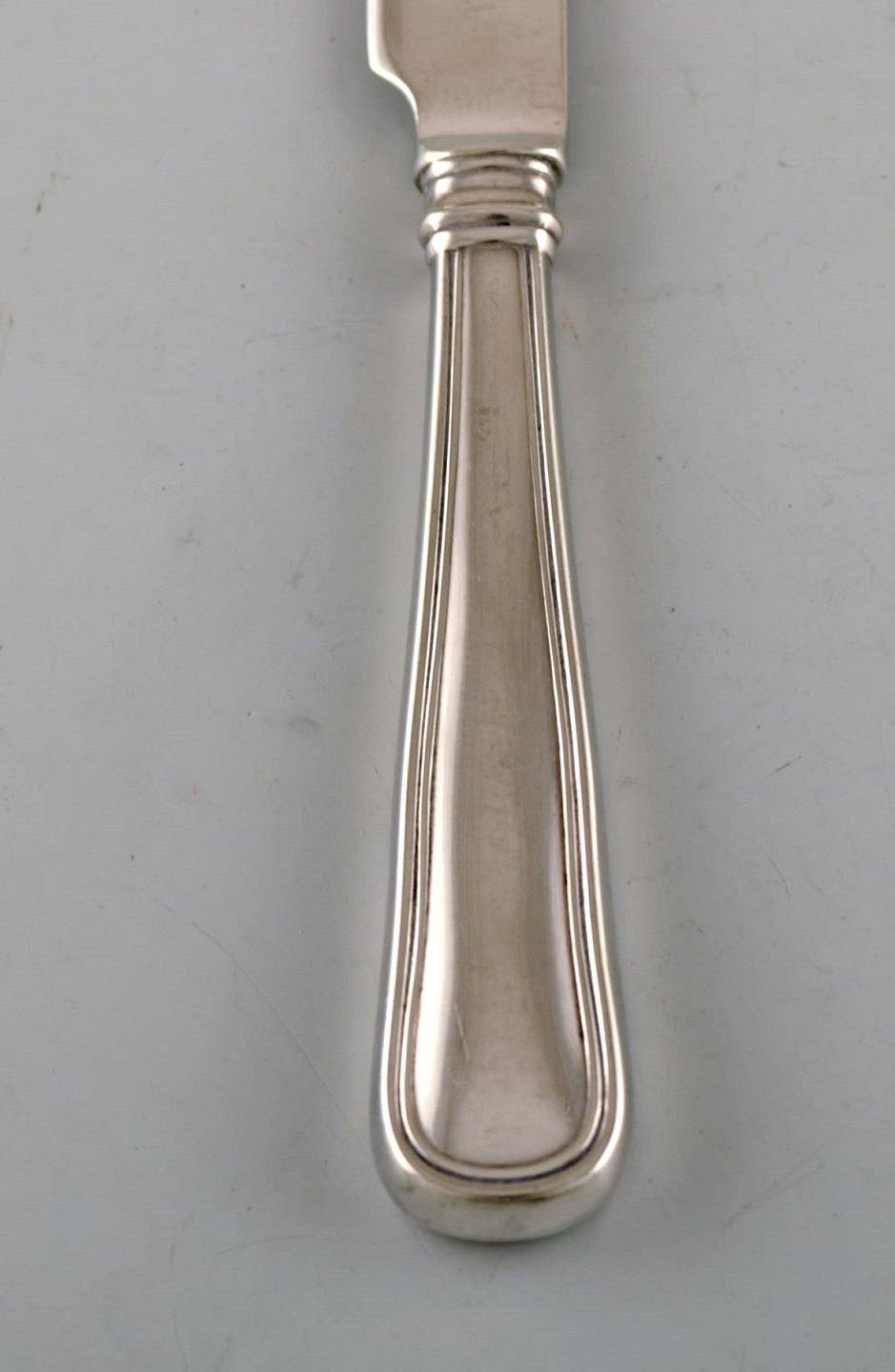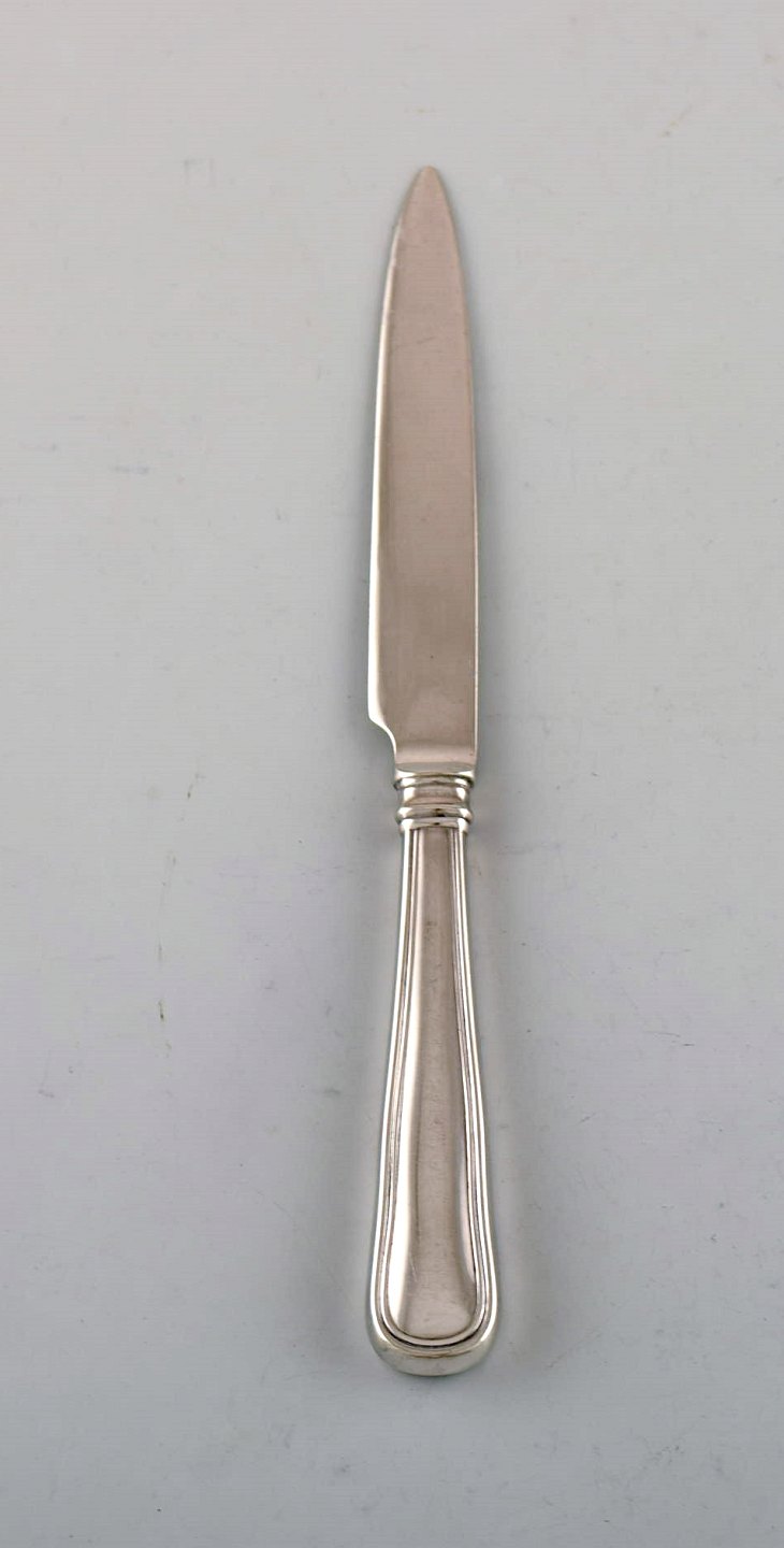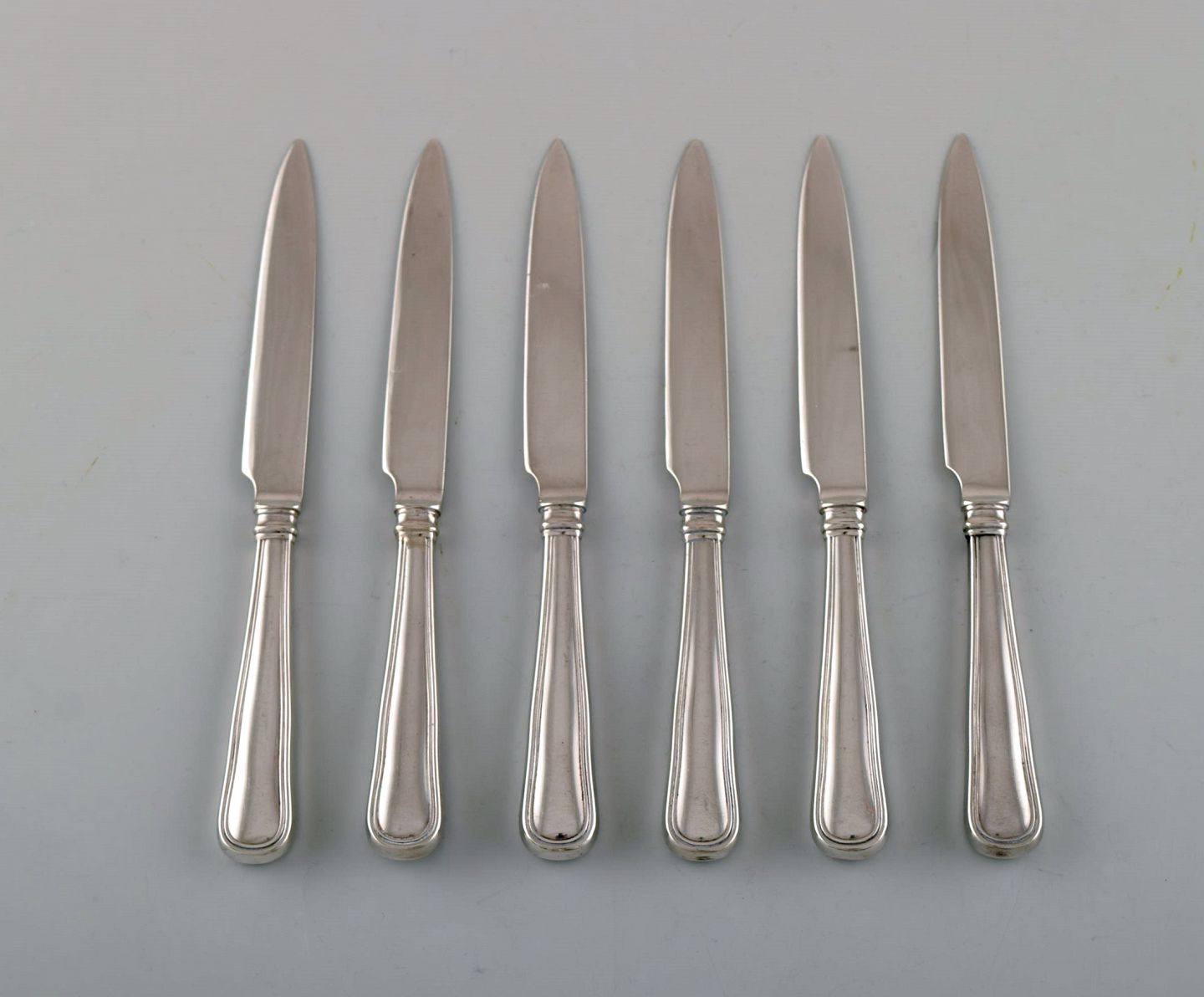 Seks "Dobbeltriflet" frugtknive i tretårnet helsølv. Dateret 1920'erne.