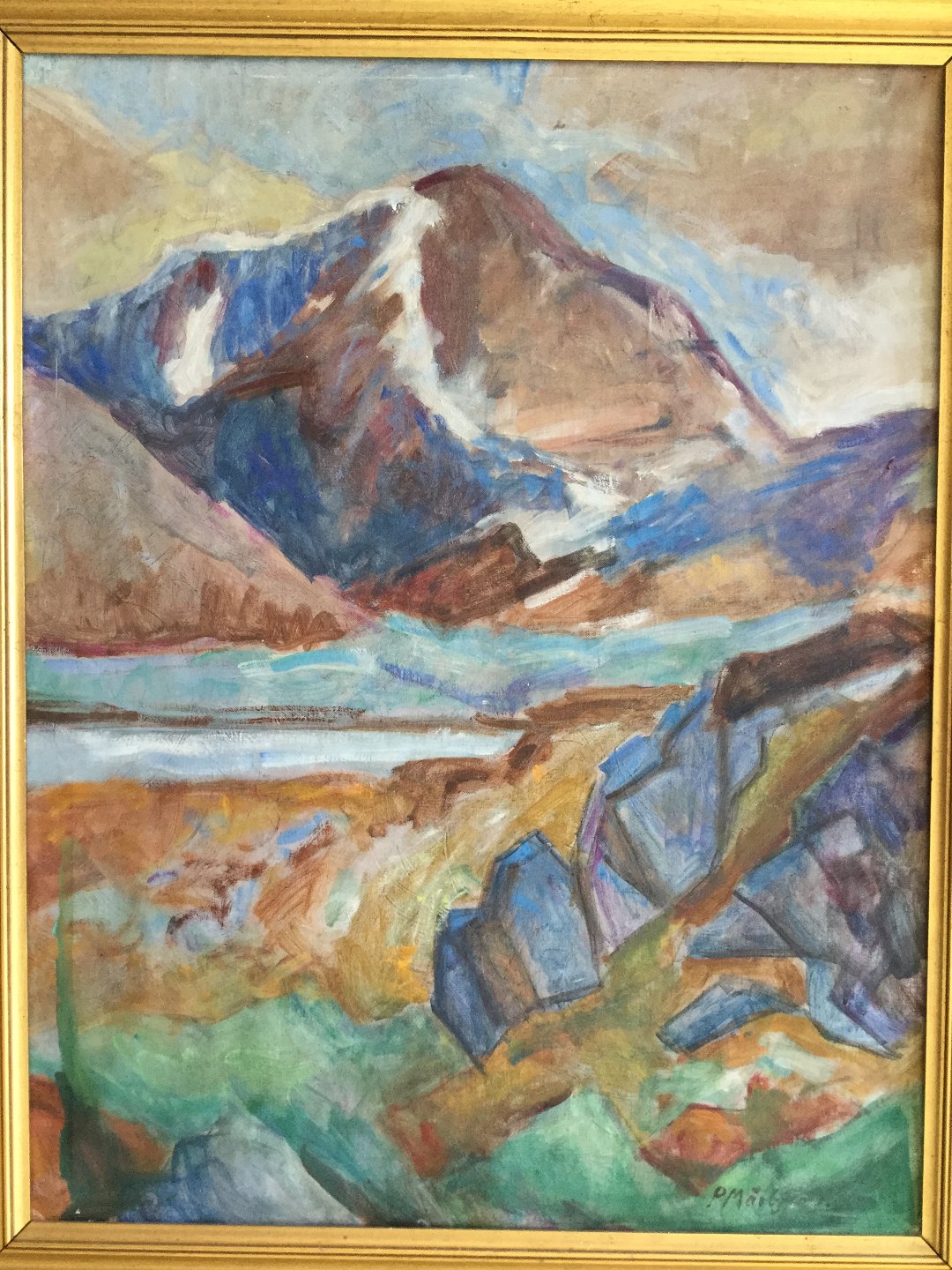 Maleri af Peder Maarbjerg . Bjerglandskab.