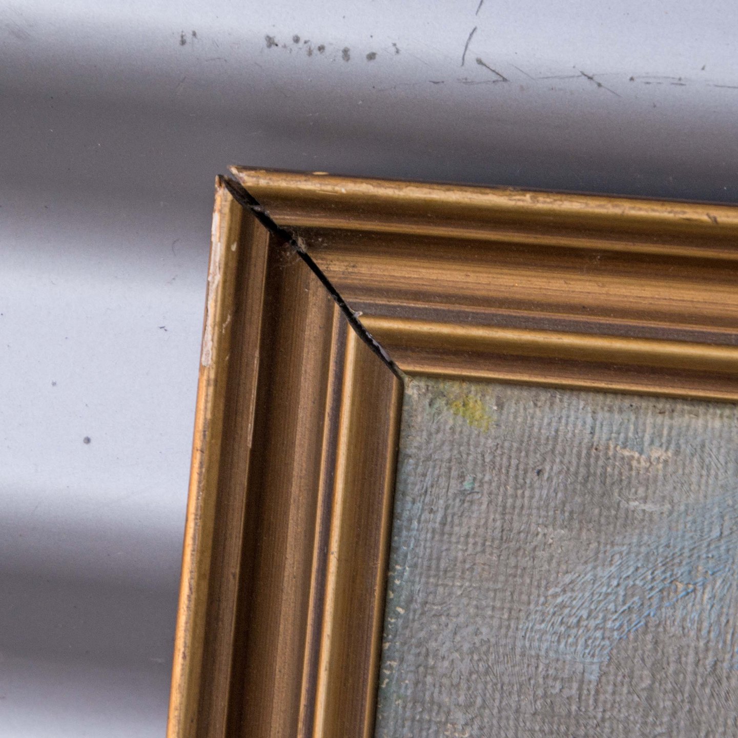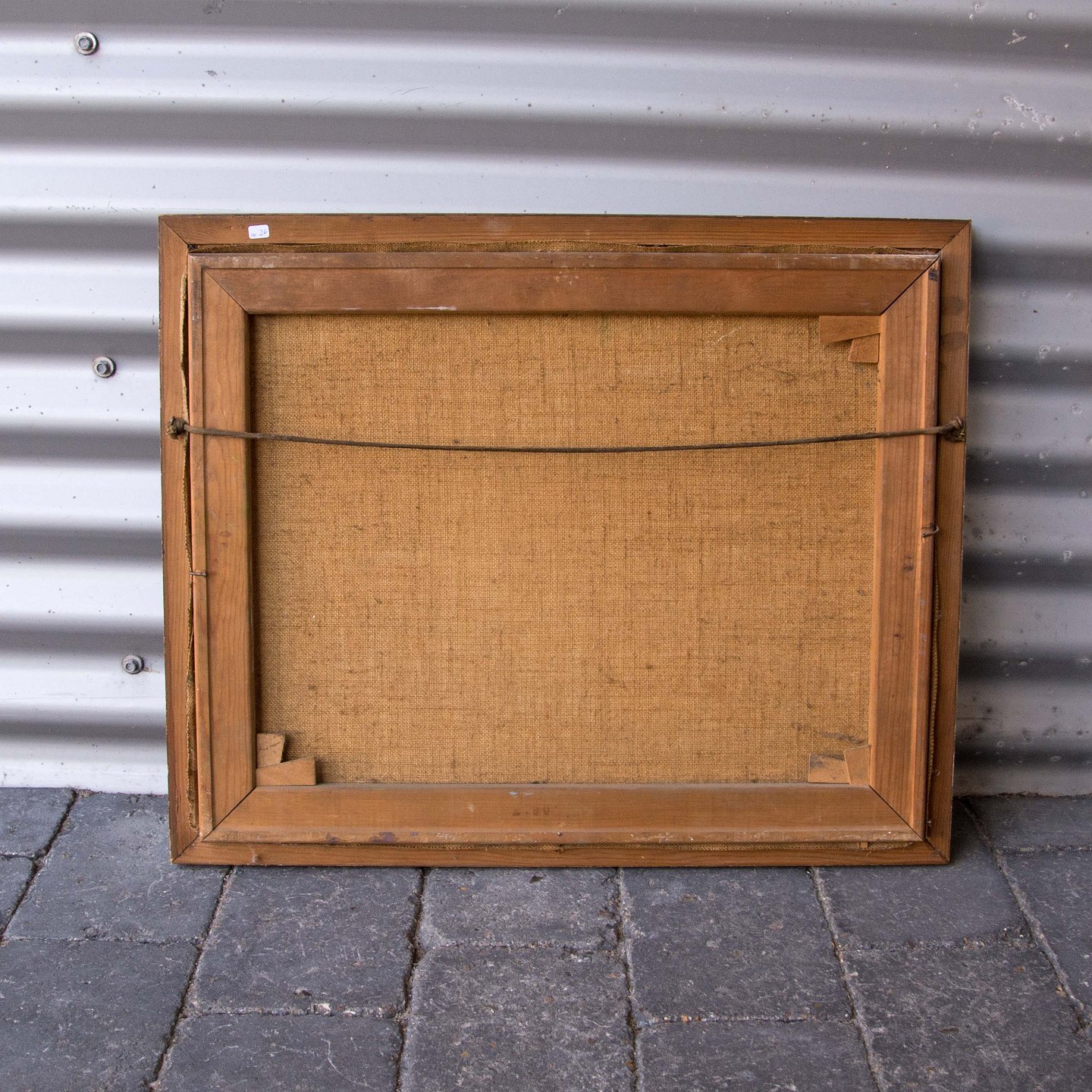 Maleri af afbstrakt landskab, olie på lærred i ramme.